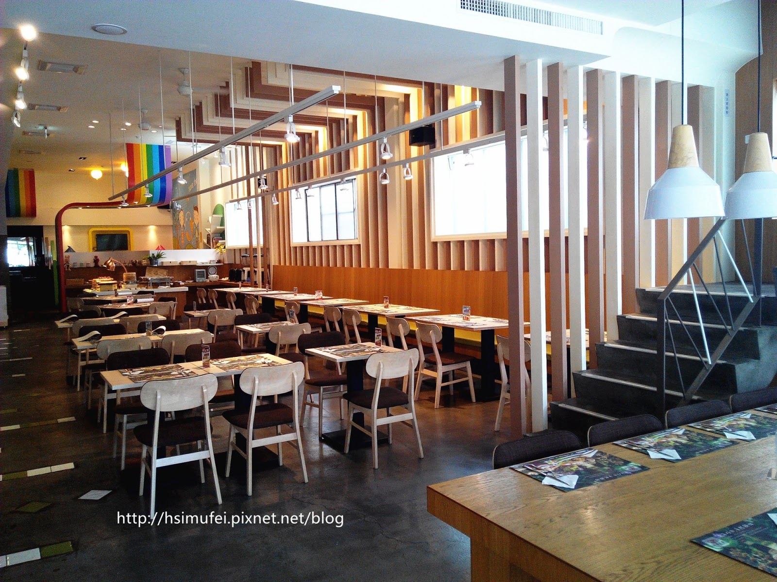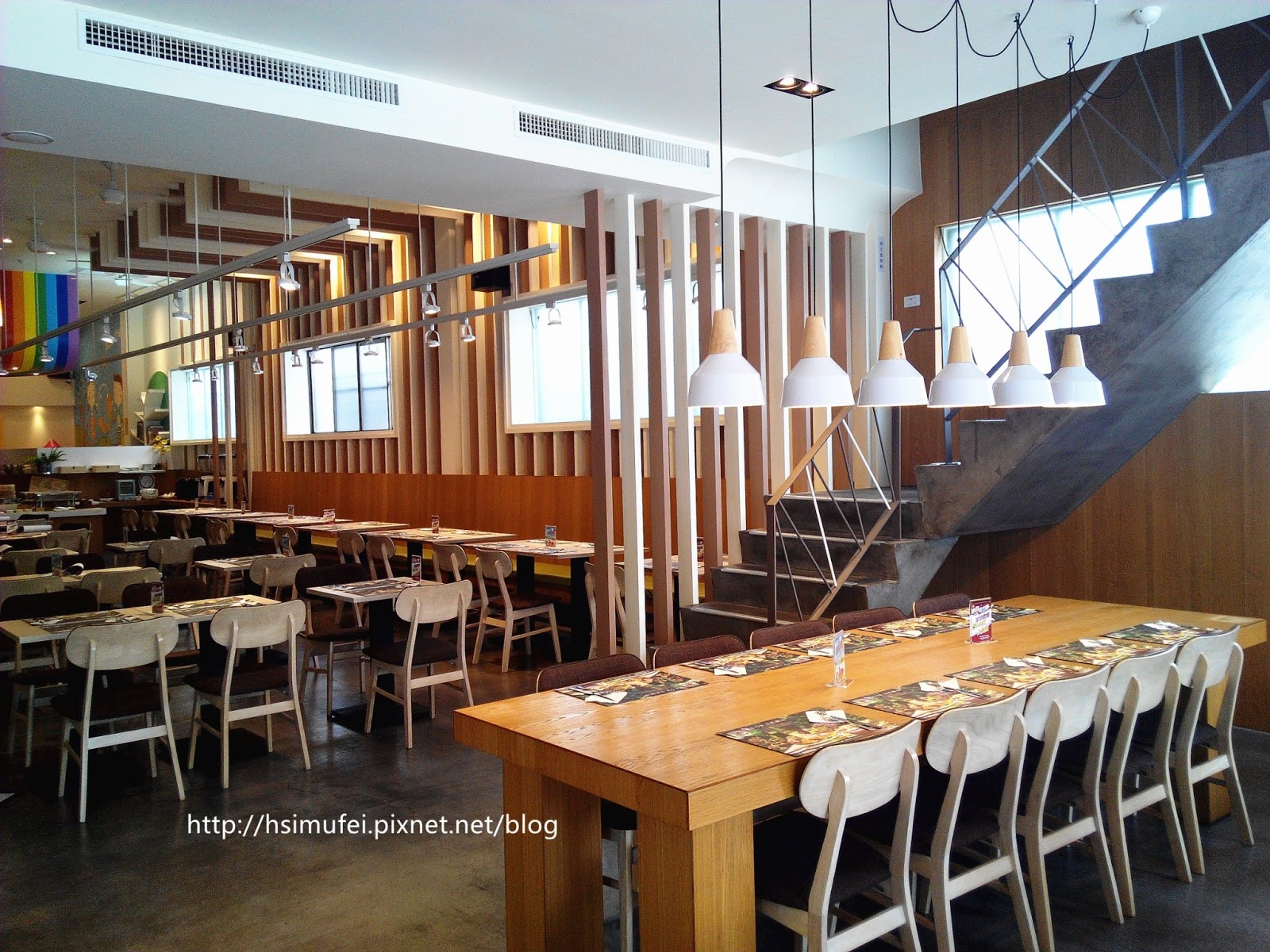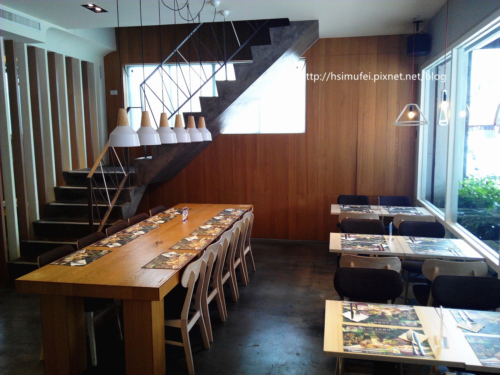 內部環境裝潢採用北歐簡潔風格,木造桌椅及裝飾呈現了樸實卻不失典雅的質感,整體空間原本就頗寬敞,天花板挑高的設計更帶來舒適的視覺感受。