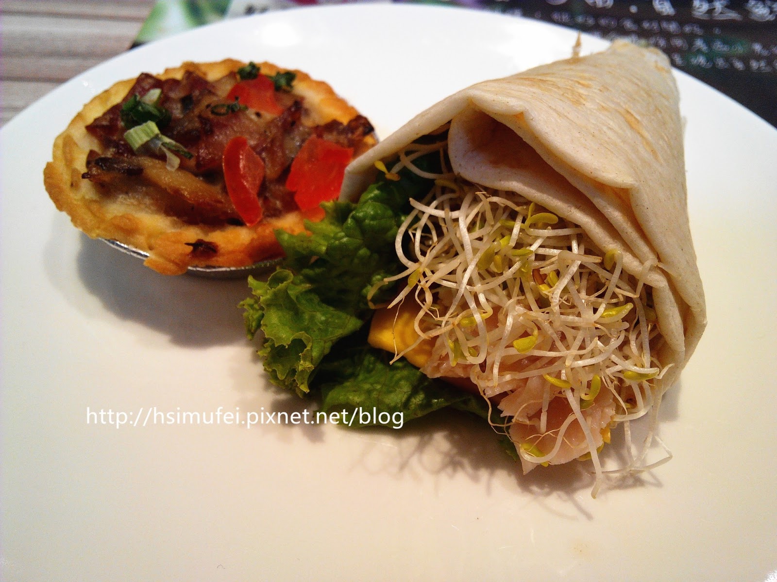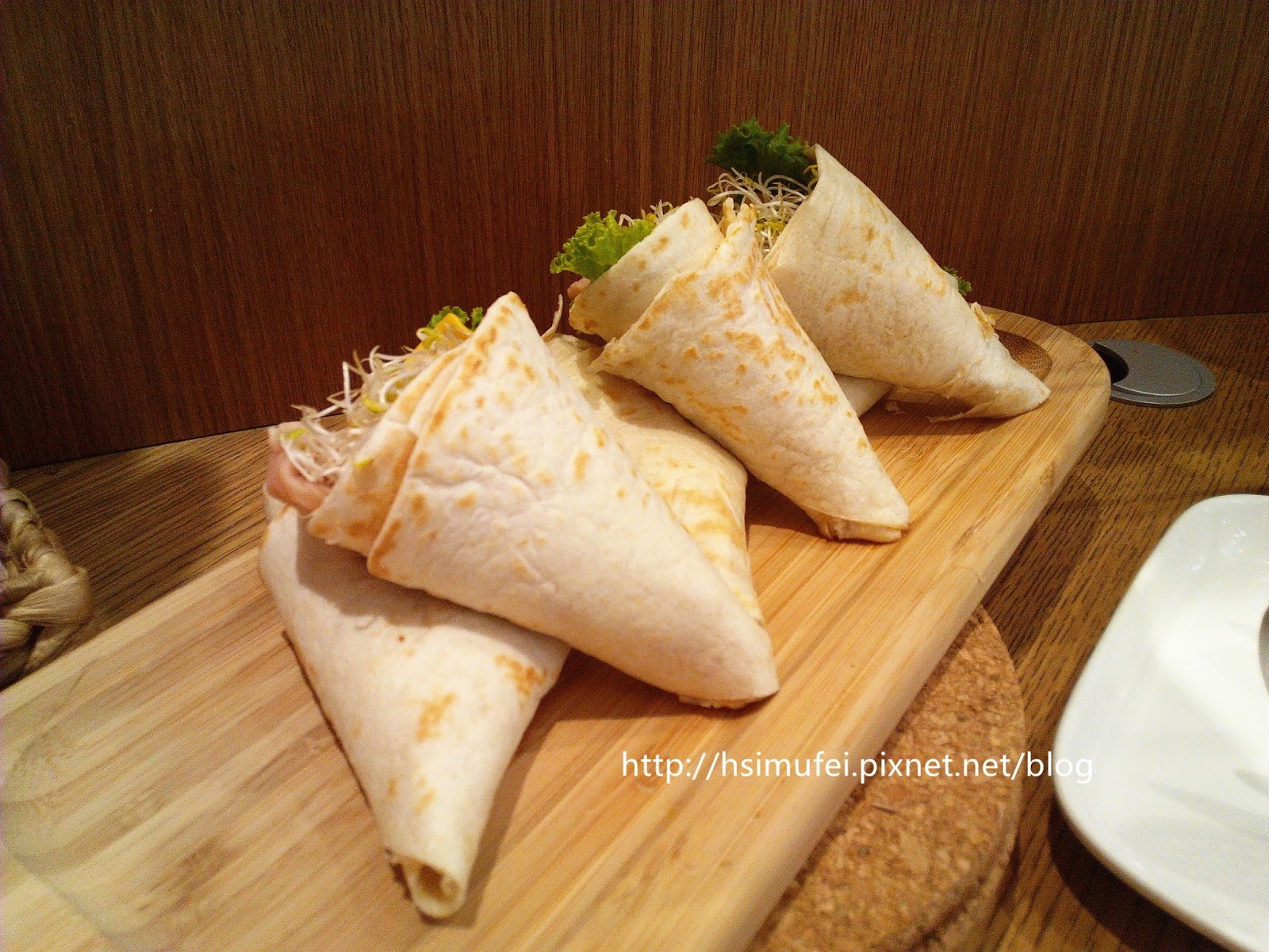 捲餅裡包了苜蓿芽、生菜、起司與燻雞肉,雞肉的燻香帶來了清淡中的驚豔感。