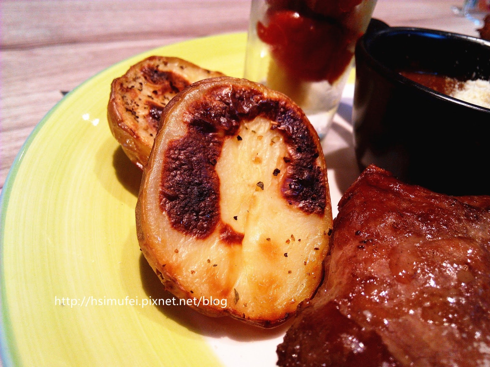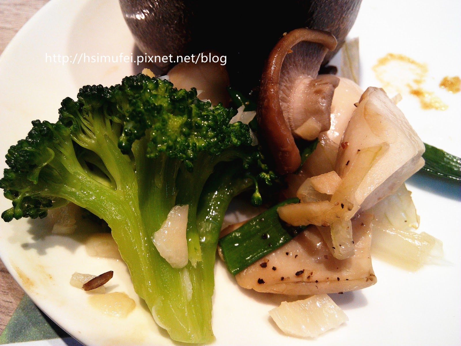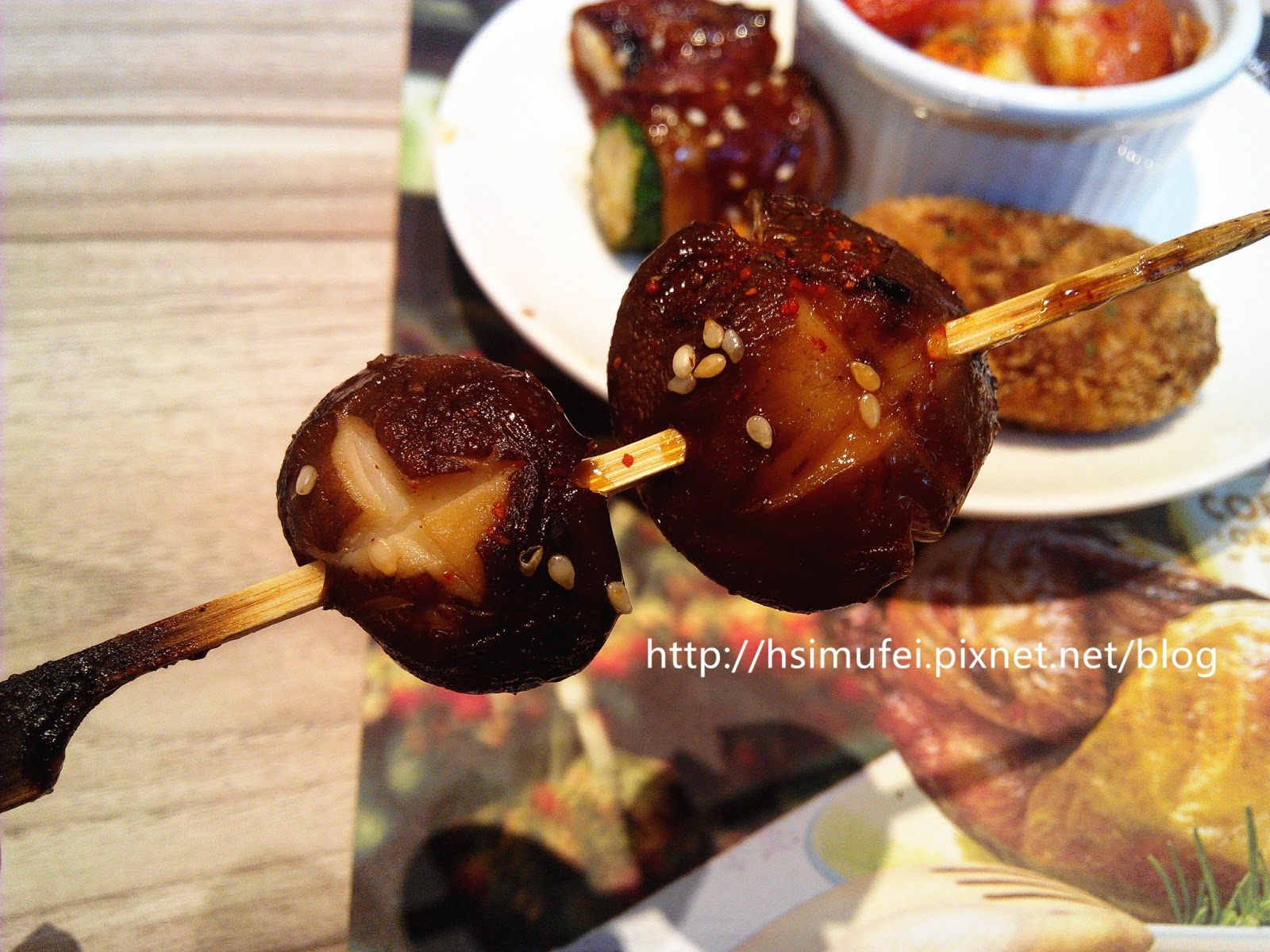 義式烤菇上均勻塗了鹹甜醬汁,口味微重,吃起來軟嫩潤口。