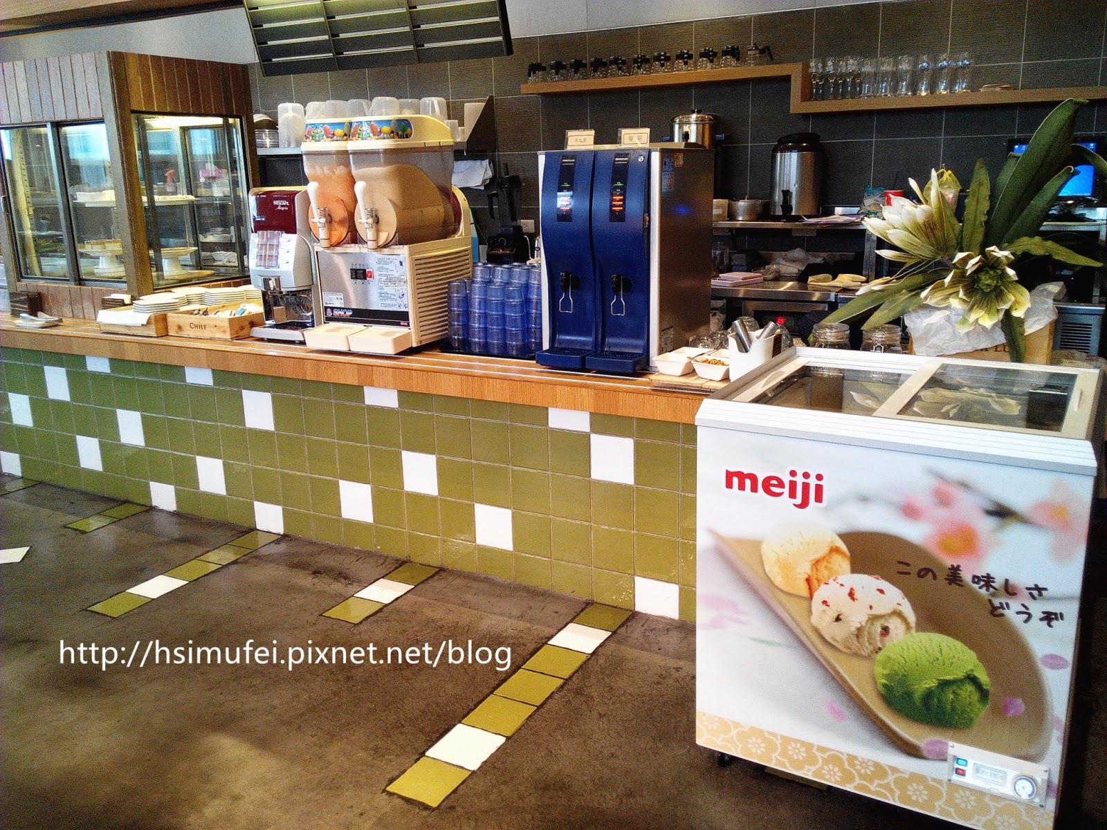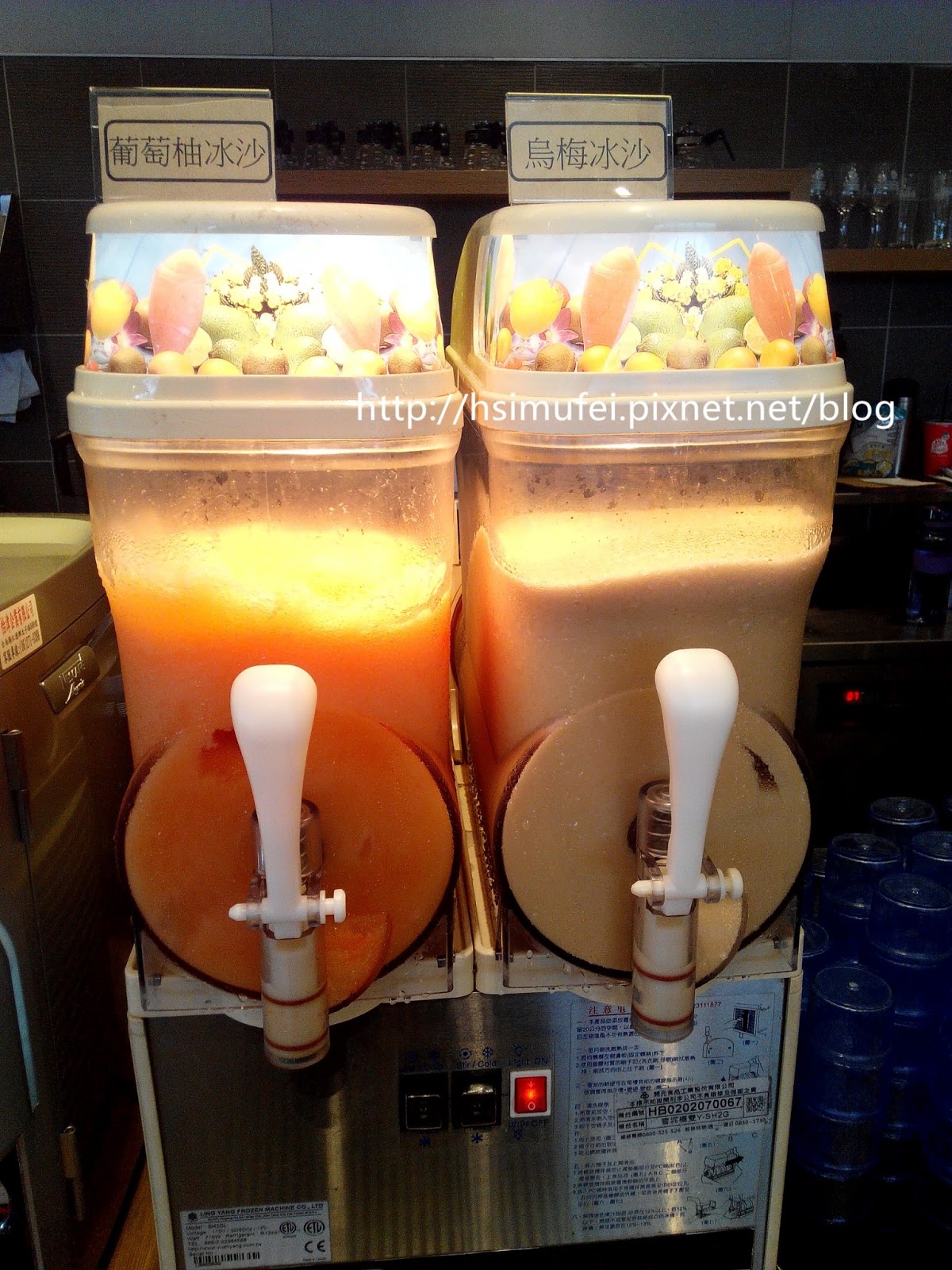 冰沙則有烏梅與葡萄柚口味,旁邊是有六種品項的雀巢咖啡機。