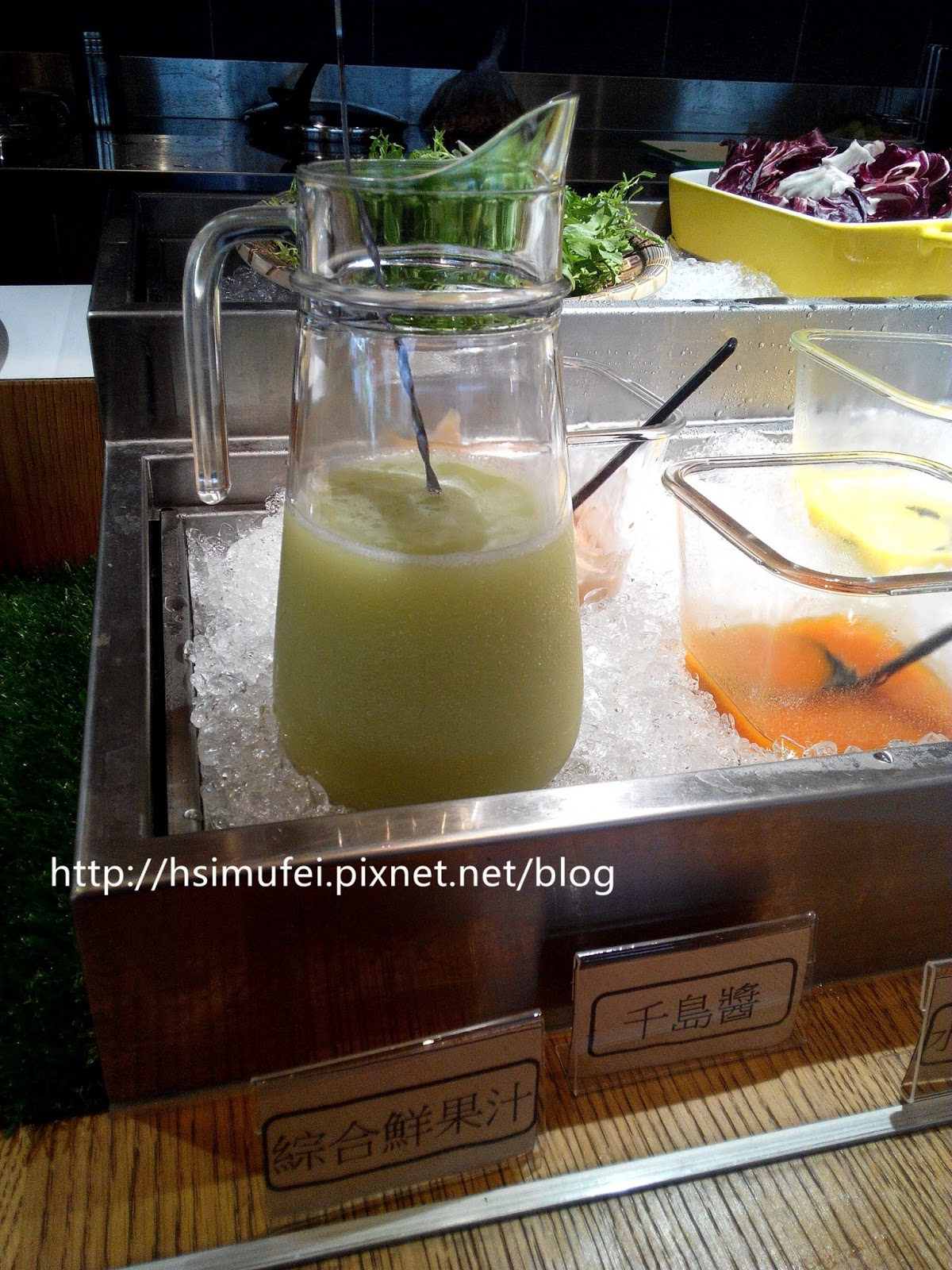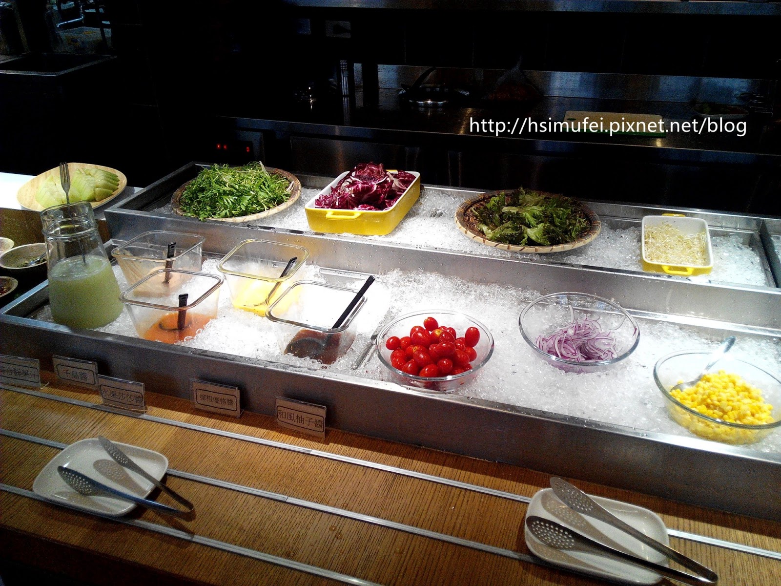 生菜沙拉部分供應多種生菜與柳橙優格醬、水果莎莎醬、千島醬與和風柚子醬四種醬汁。