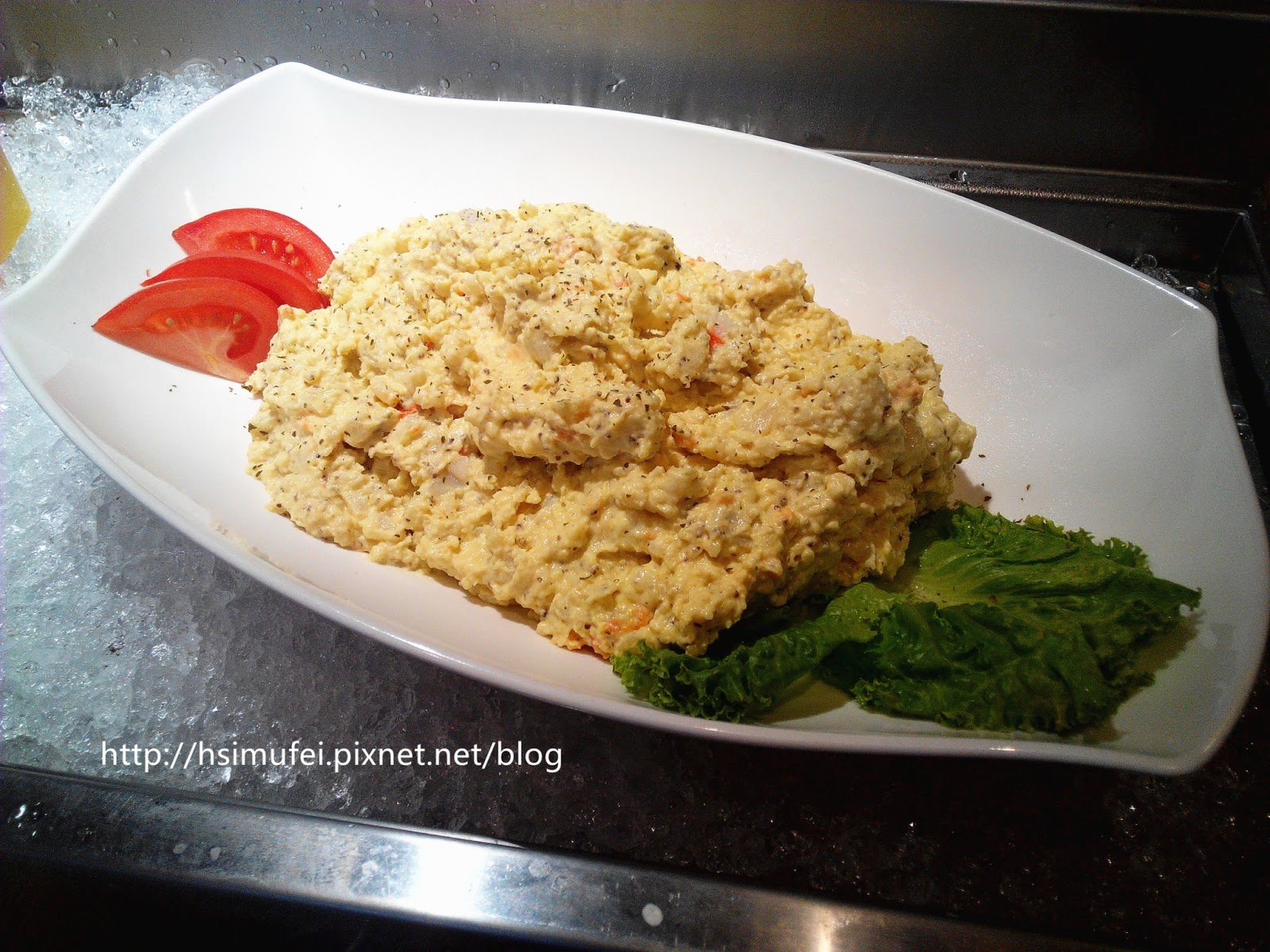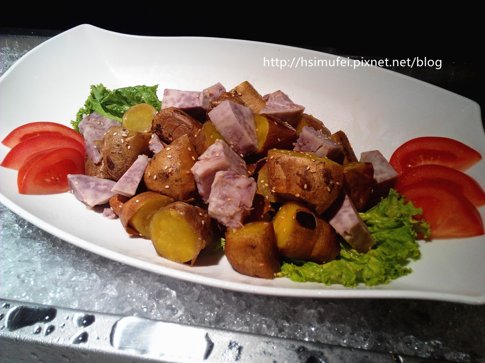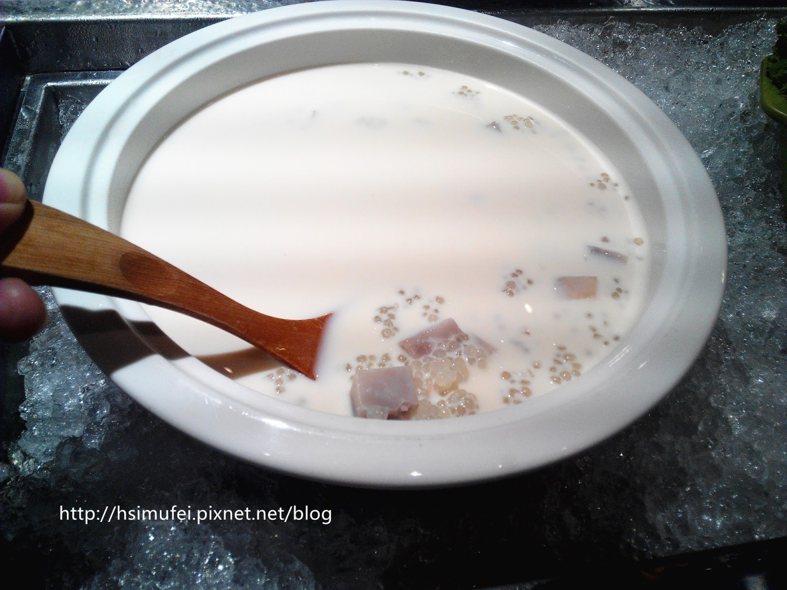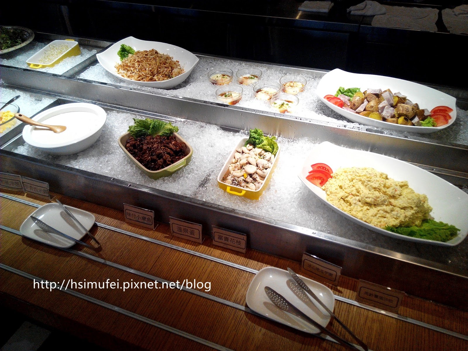 冷食區提供馬鈴薯蛋沙拉、冰心地瓜芋頭、溫泉蛋、富貴花枝、日式小章魚、和風洋蔥與芋香西米露。