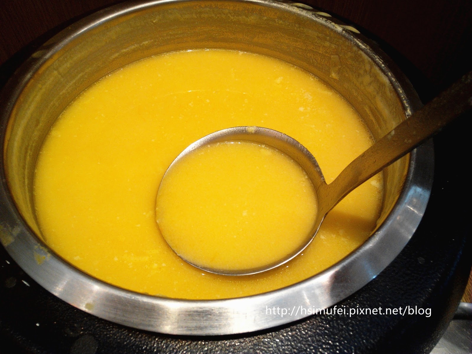 黃澄澄的南瓜濃湯飄出融合了奶油與南瓜甜味的香氣,湯稠味厚。