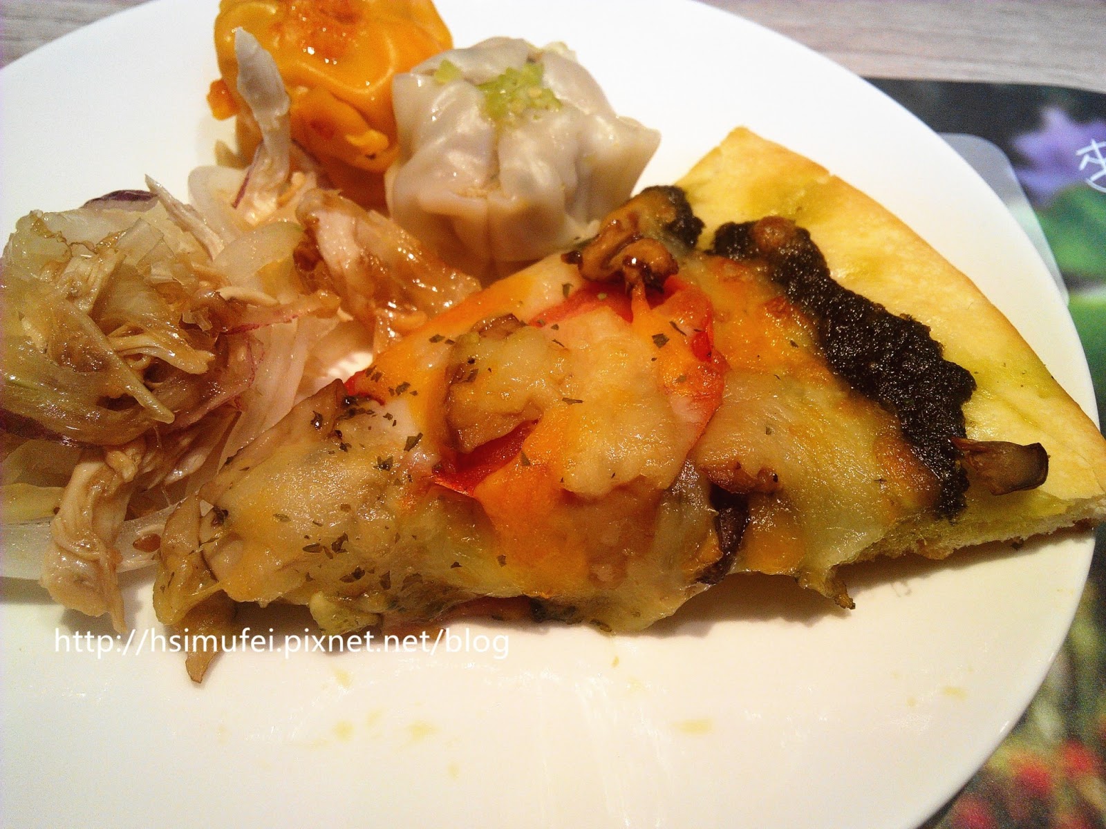 這款披薩用了不少時蔬,甜椒、義式香料、青醬、菇類等,滋味也不錯。