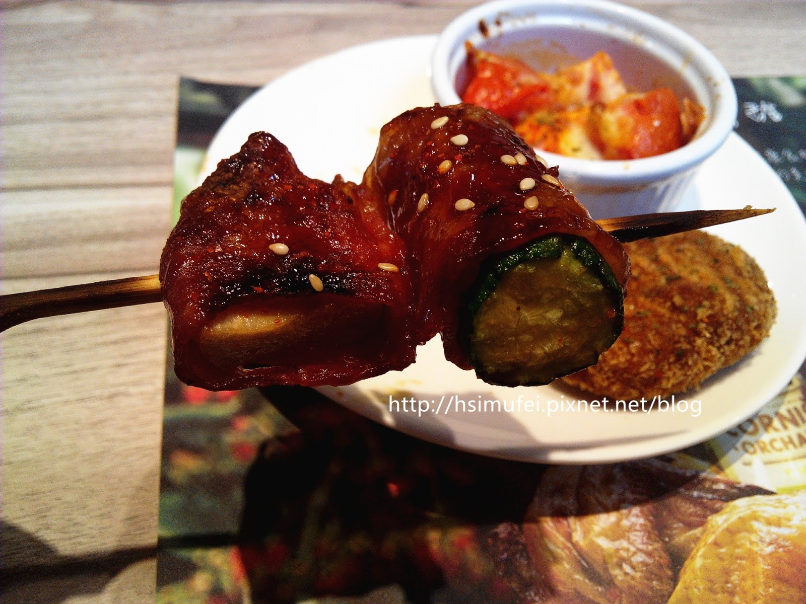 培根裡分別裹了小黃瓜與杏鮑菇,帶來更豐富的口感與滋味享受。