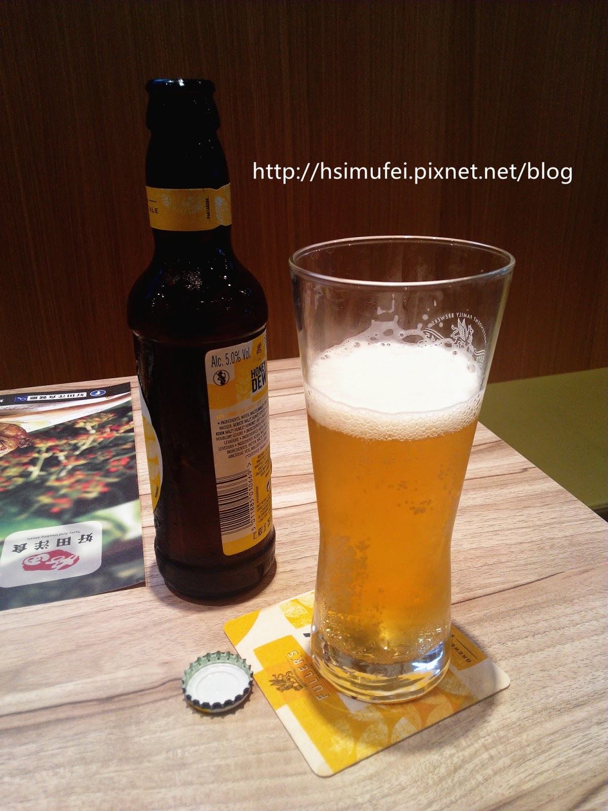 趁著優惠活動,加上既有的好奇心驅使,我們加購了原野啤酒裡的蜂蜜啤酒。