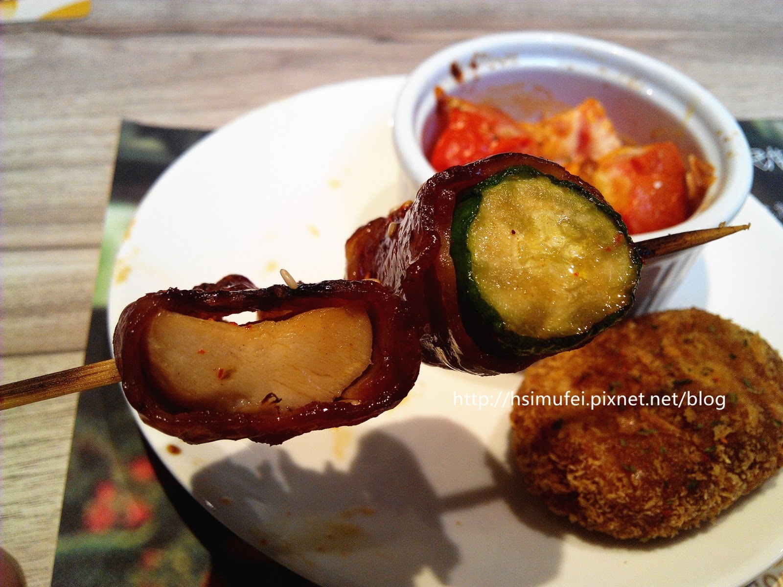 烤物則有焗烤番茄、義式烤菇、培根串燒、披薩。