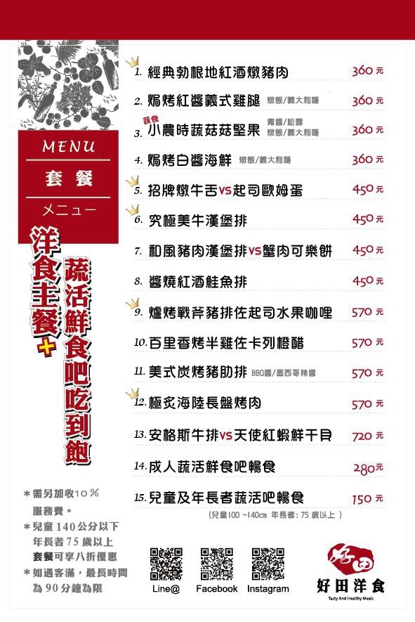 這次要介紹的餐廳,其前身為「好田和洋料理」,採自助餐形式,每樣餐點都標示了價位,想吃什麼就拿什麼。六月初開始轉換成主餐加上Buffet的供餐模式重新開幕,並更名為「好田洋食餐廳」。