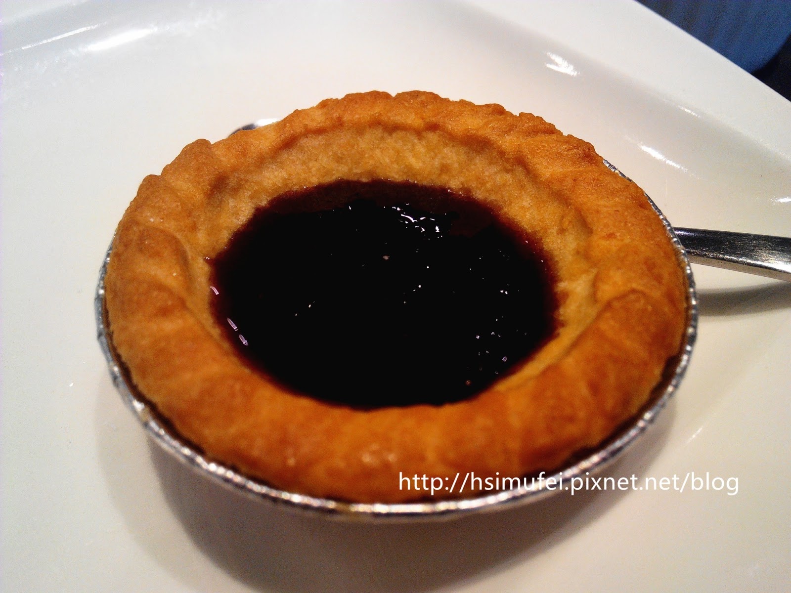 藍莓塔的脆香塔皮裡是店家自製的藍莓醬,滋味偏甜,個人猜測是加了黑糖調製,不過藍莓本身的香氣還是很明顯的。