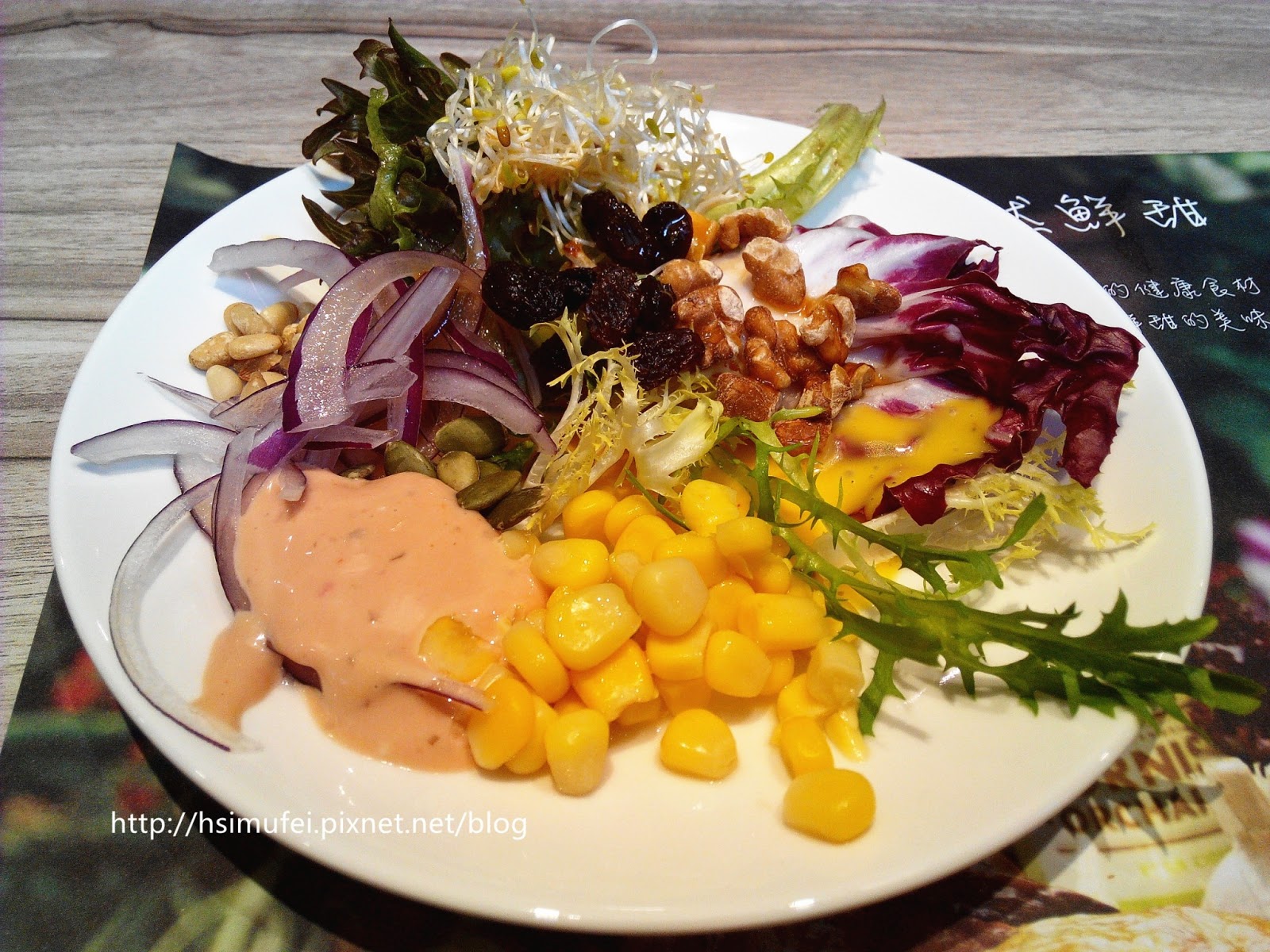生菜沙拉使用的各種食材都處理得很好,吃起來新鮮又脆甜。