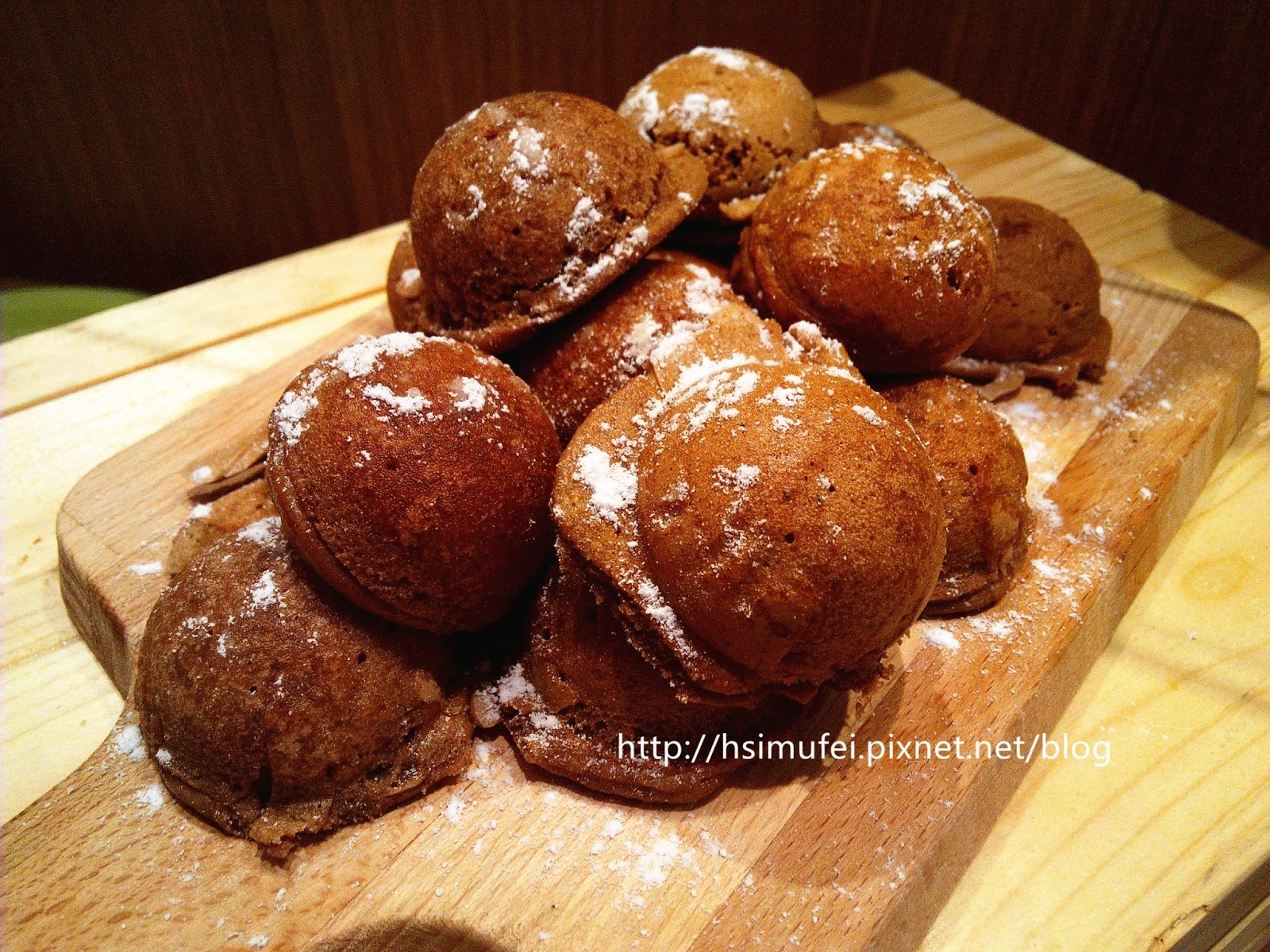 巧克力球為甜點類,以巧克力加麵粉製成渾圓討喜的外觀,內餡為蘋果丁,時甜時酸,時軟時脆。