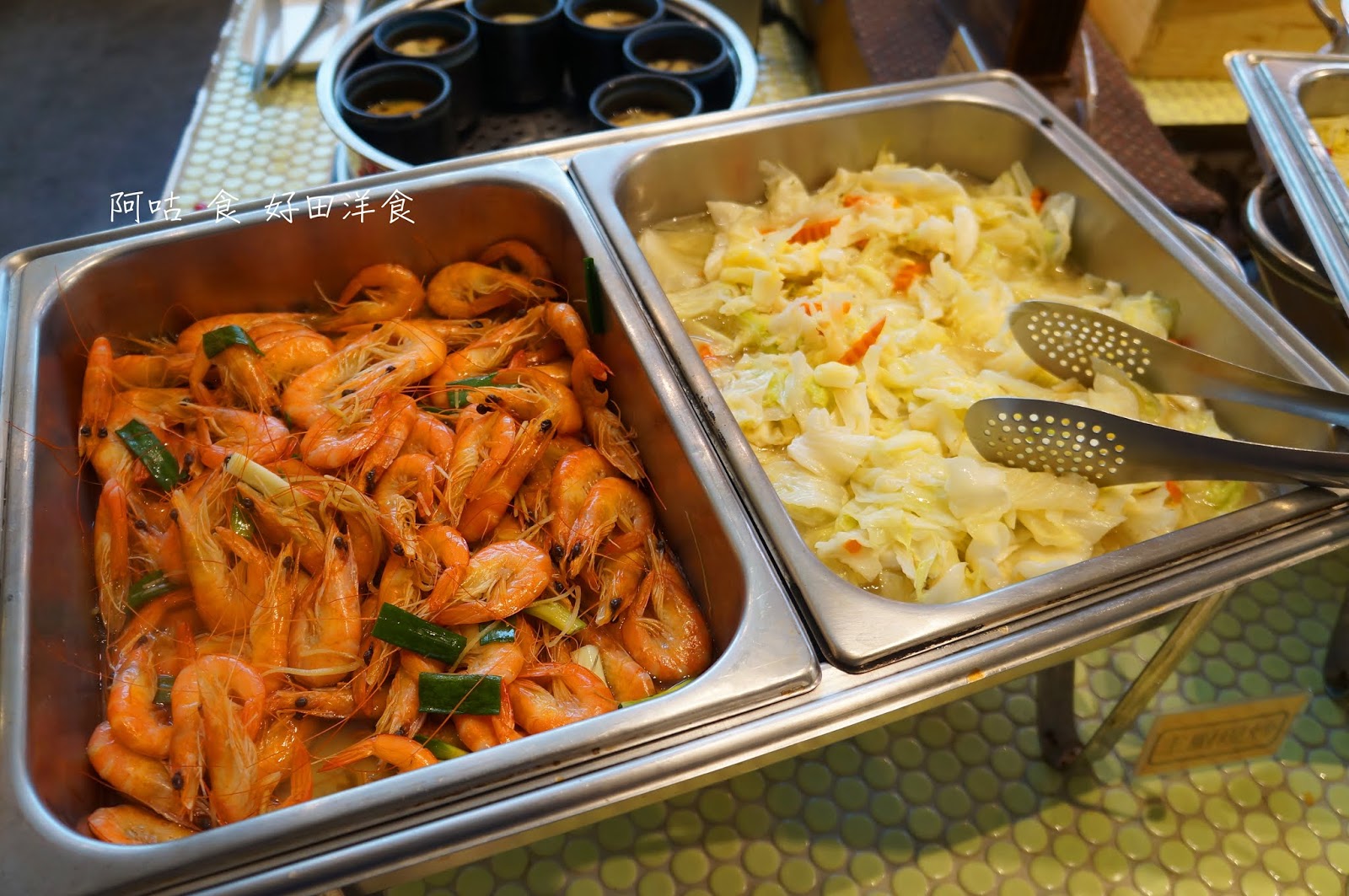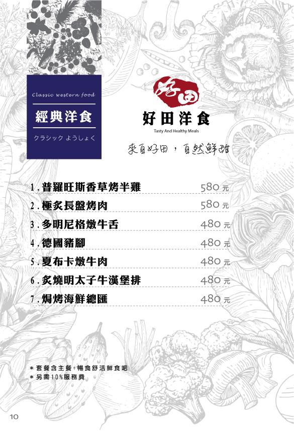 店家提供的餐點品項有稍作調整,基本上分平日限定、經典洋食與經典排餐,皆包含主餐與舒活鮮食吧,其中平日可單點鮮活舒食吧,以上所述皆需另加10%服務費。