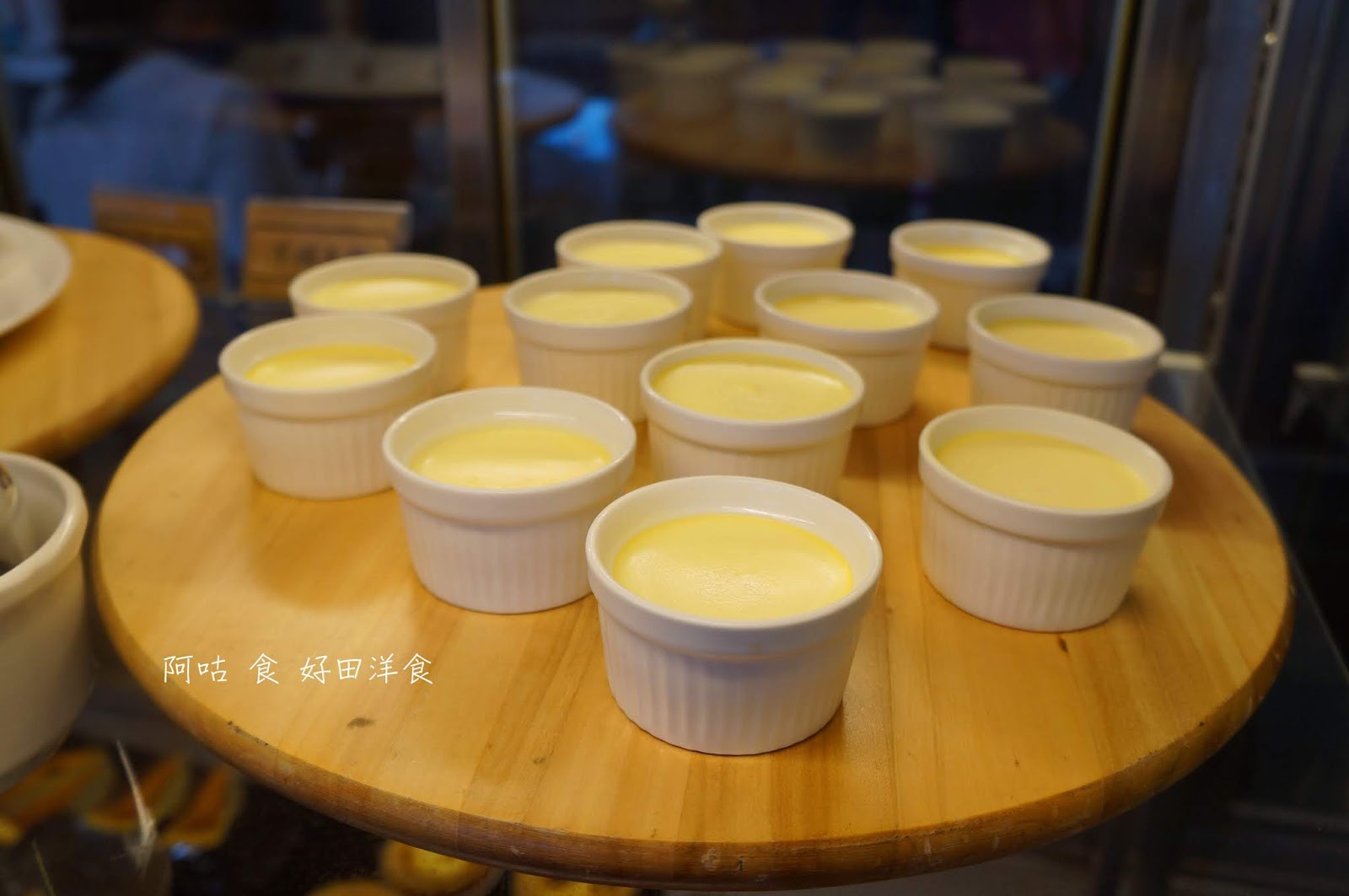 手工布丁本身只有奶蛋香氣而不帶甜度,需搭配黑糖醬食用,風味較佳。