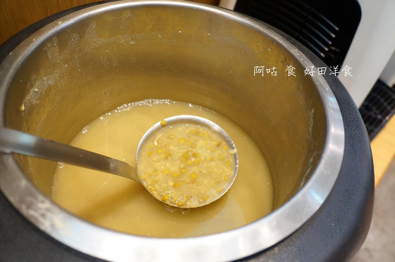 湯品類提供了蘑菇濃湯與綠豆湯,旁邊為薰衣草奶茶與可爾必思兩款冷飲。