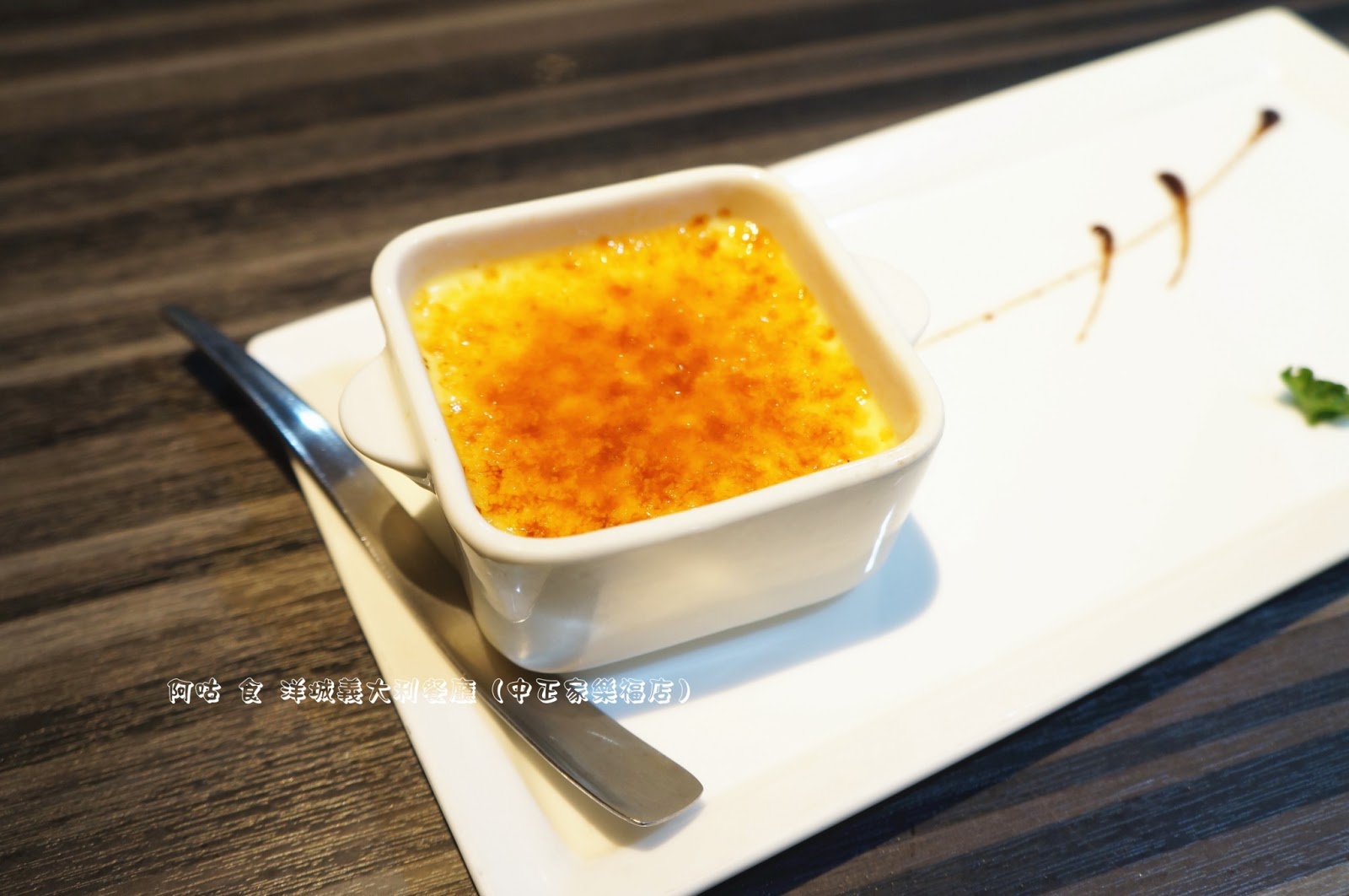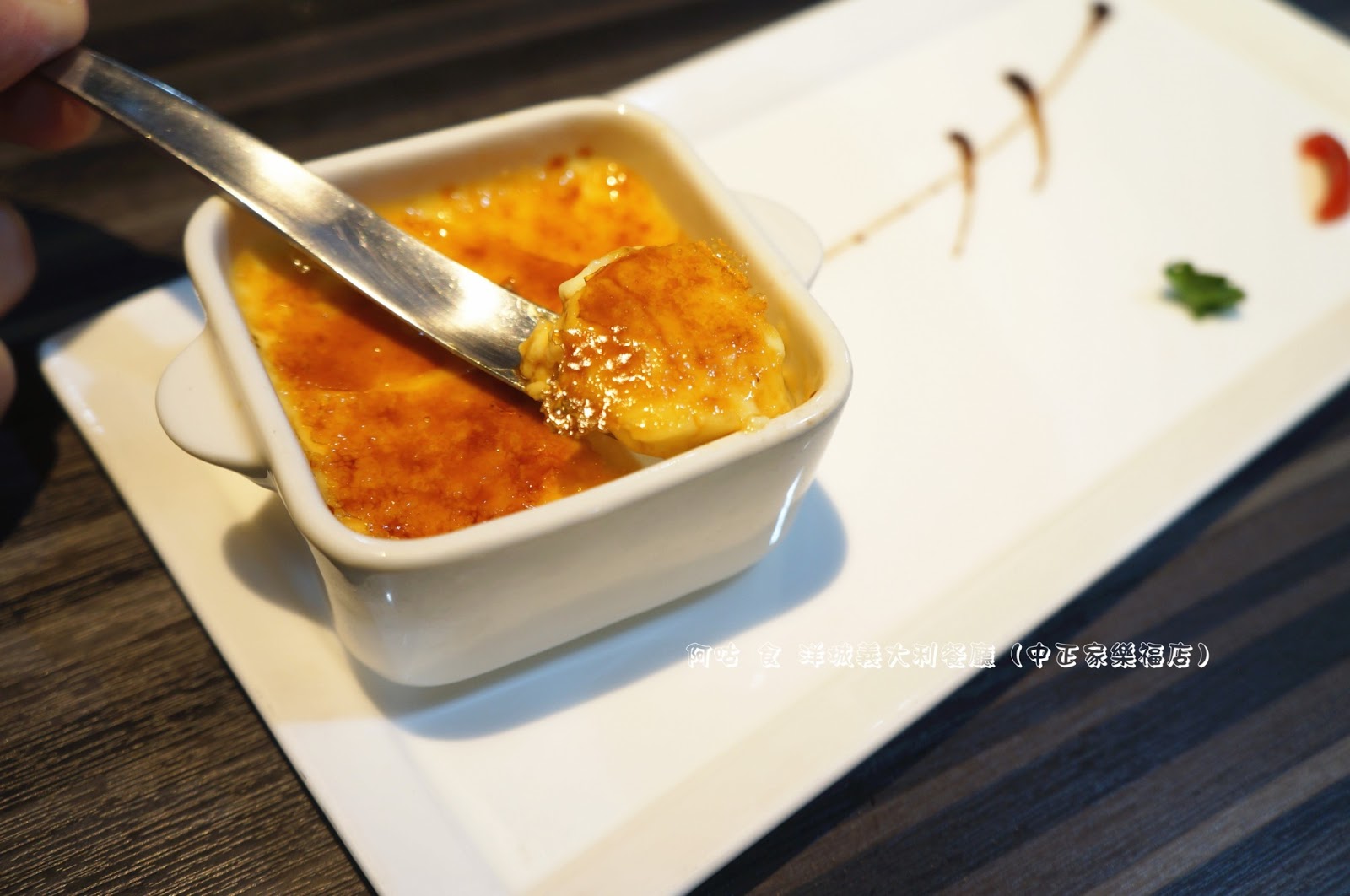 表面為烤成金黃色的焦糖,口感硬脆。其下為蛋香濃郁的烤布蕾,入口立感其綿密細潤。