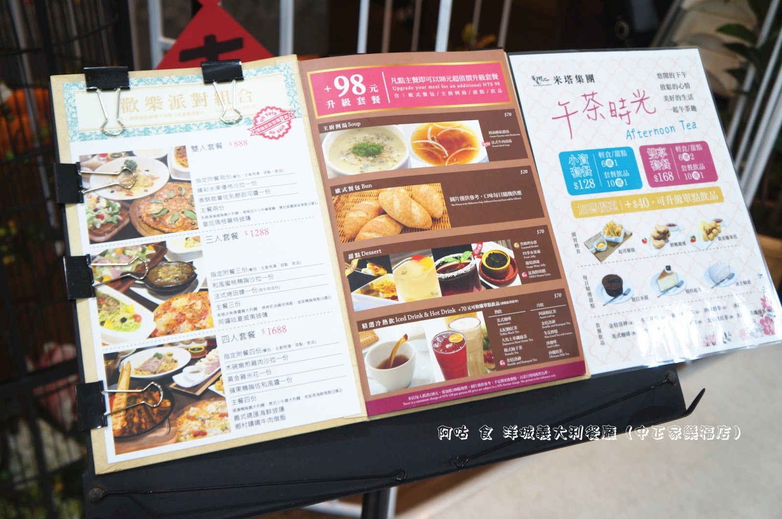 套餐甜點為「焦糖烤布蕾」、「盆栽奶酪」、「四季水果凍」、「葡萄酒凍」四選一。