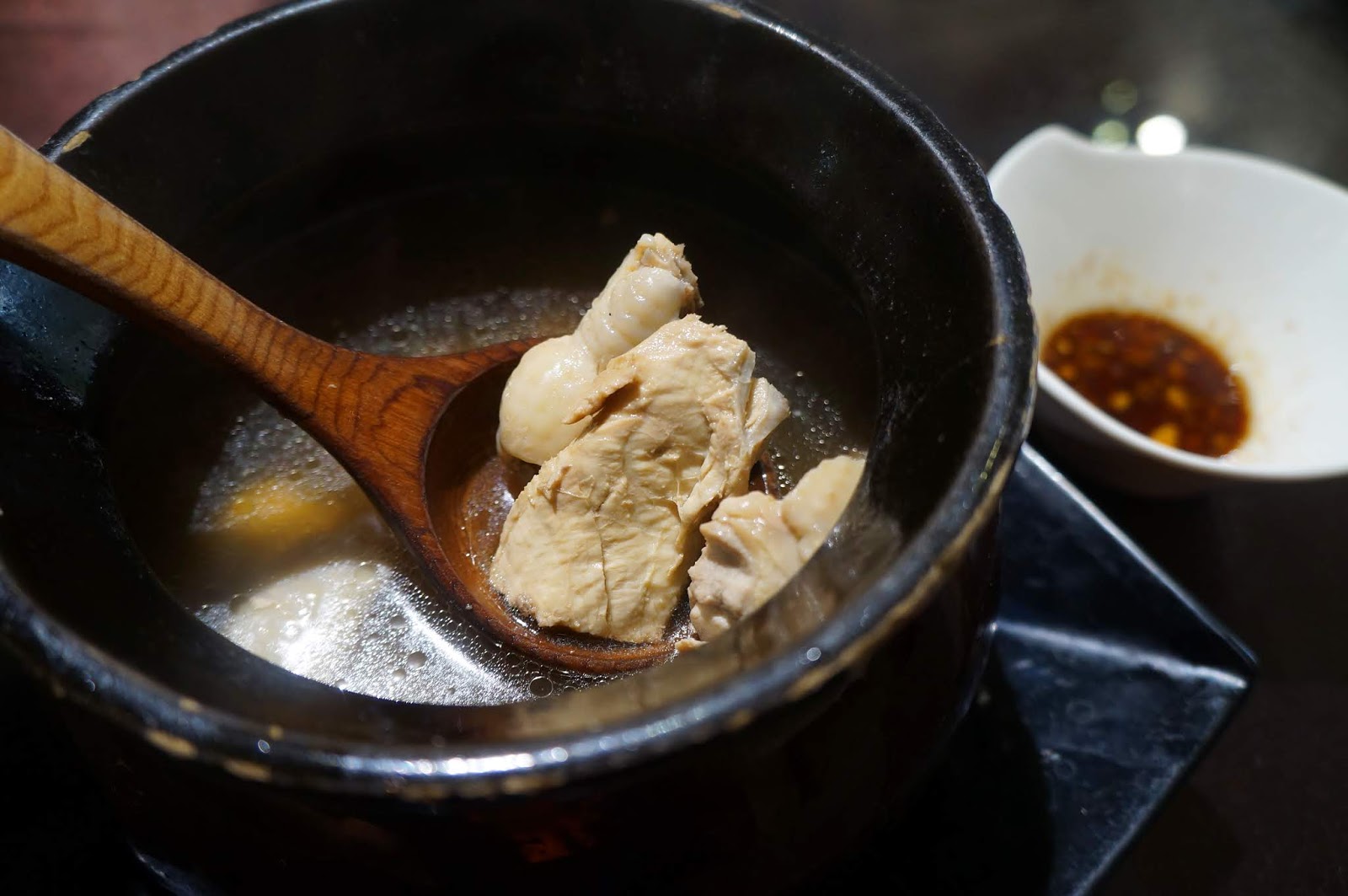 若覺口味過淡,可蘸取適量沾醬,滋味酸甜開胃,與土雞肉頗搭。