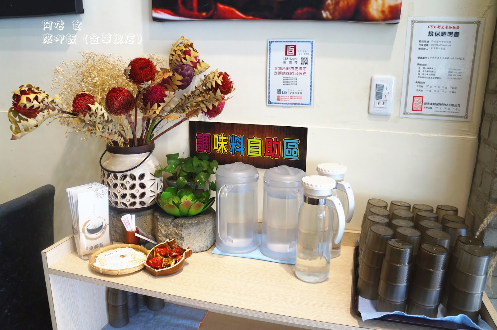 飲用水與牙籤需自行取用。此處亦置放了MENU與店家名片。