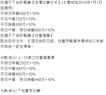 【餐廳收費說明(取自官方網站)▼】