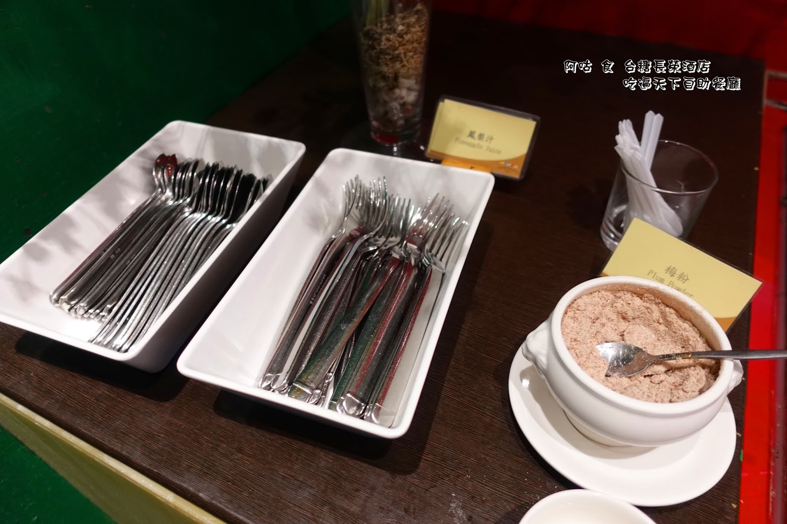 湯匙用來享用剉冰,梅粉、叉子則供旁邊水果區使用。