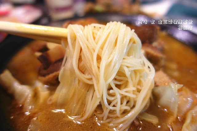 這道餐點搭配的是乾式的沙茶意麵,佐以高麗菜葉的甘甜與沙茶的鹹甜與蒜香,使麵條風味更具層次。