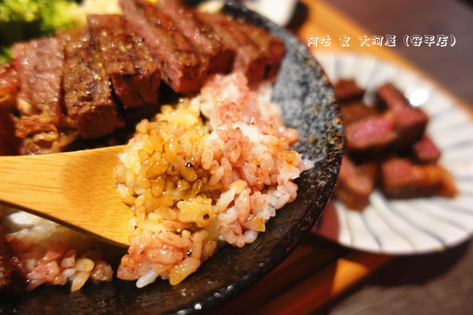 牛排醇甘鹹香的肉汁與原有的醬汁使米飯滋味更豐富。