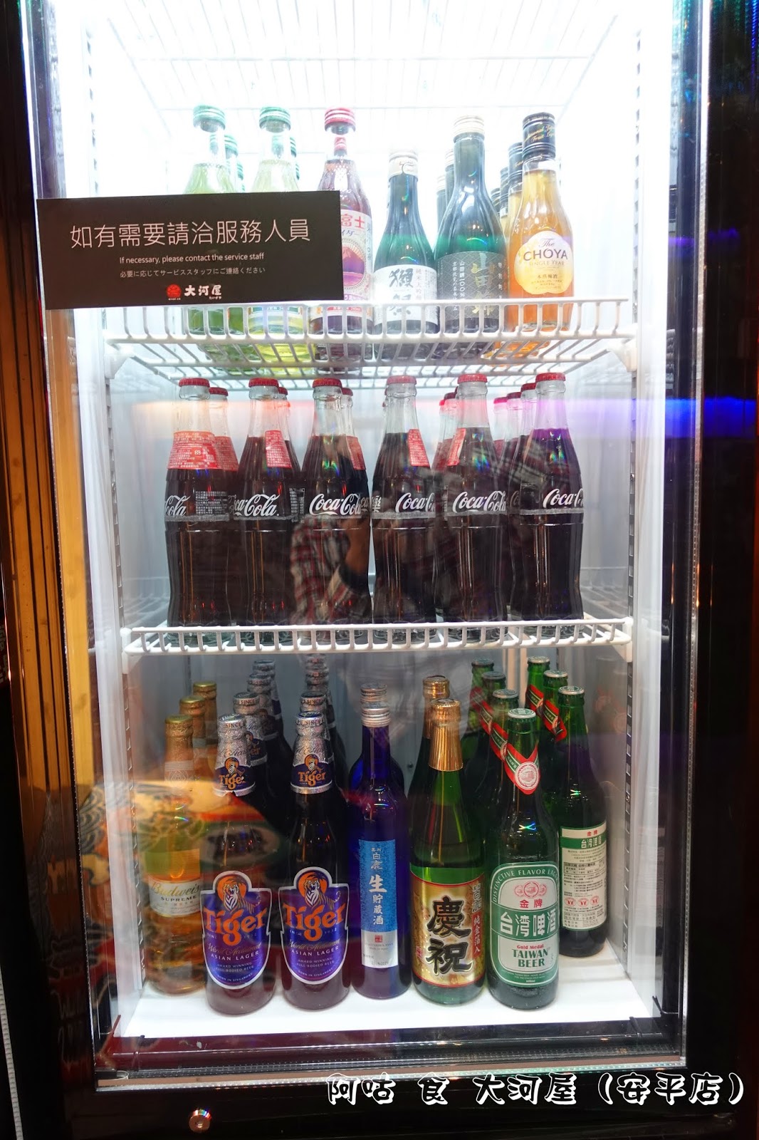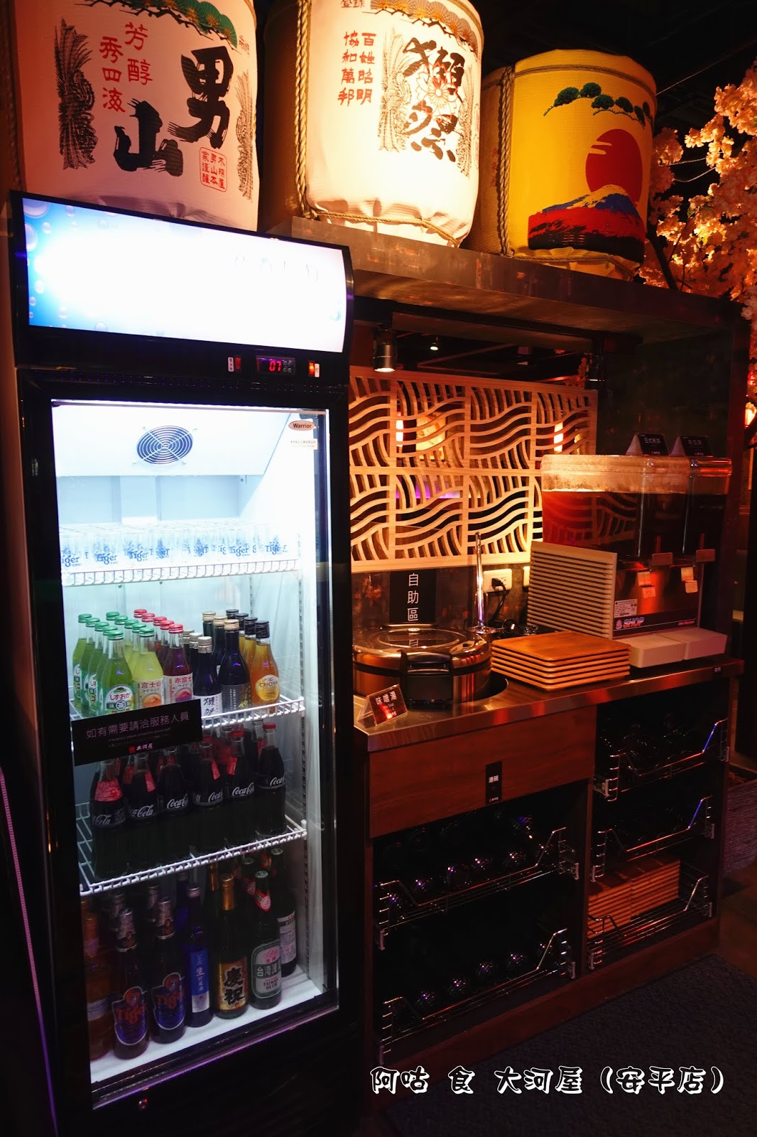 冰櫃中有可樂、各式啤酒與日本酒等供客人選購,若有需要可洽服務人員。酒後請勿駕車未成年請勿飲酒飲酒請適量