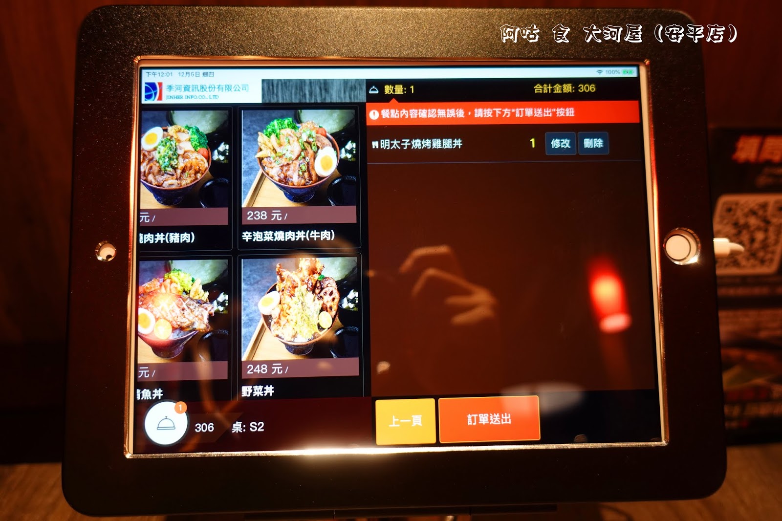 點餐完畢後按右下角的「點餐確認」,出現點餐清單與金額,確認無誤後即可按畫面下方的「訂單送出」。