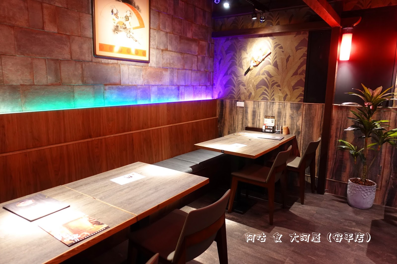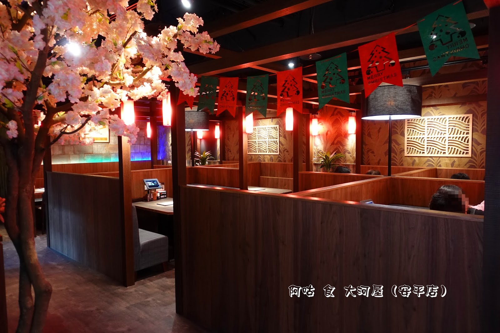 店內空間以薰木裝潢、紅燈籠、櫻花樹造景打造出日式居酒屋風格,近期更增添了聖誕節裝飾。座位除了少數兩人座外,皆為四人座,規劃也十分得宜,用餐時不會互相影響。