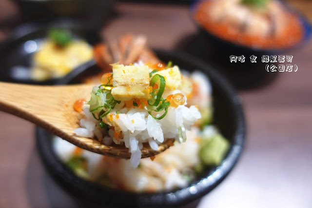 酸甜的丼飯參雜了蝦卵、鮭魚卵的鹹鮮、蛋捲塊軟綿與蔥花的辛香,滋味紛呈而爽口。