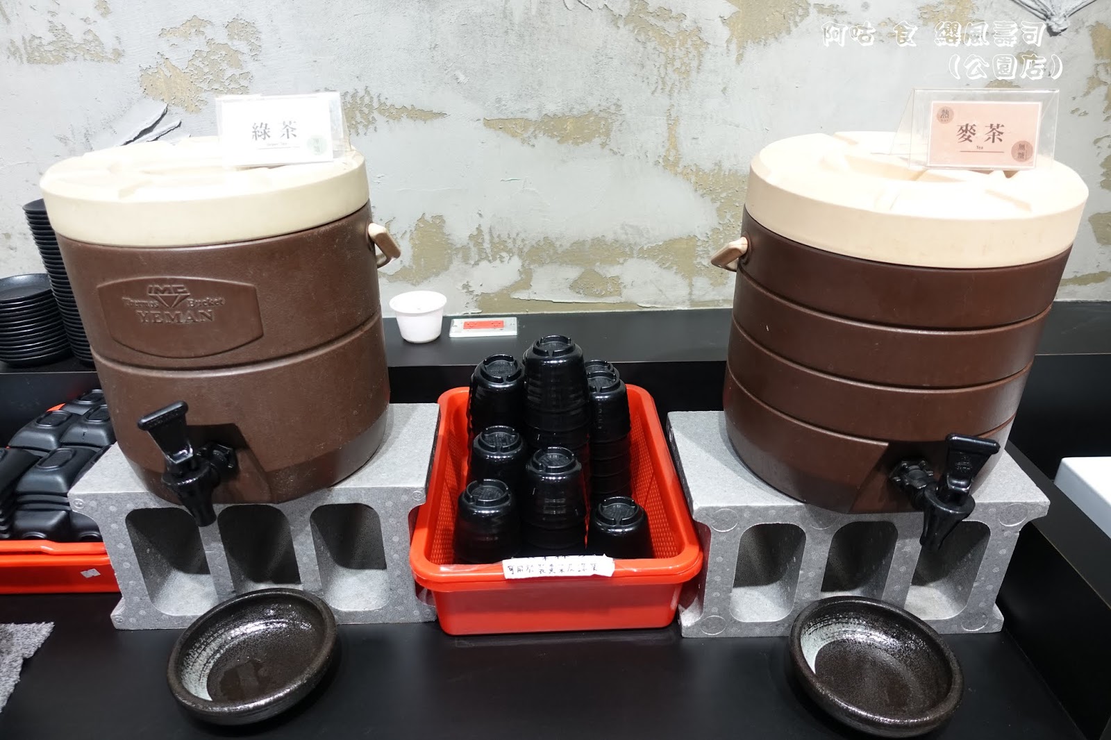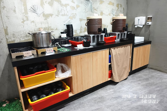 此處提供內用無限自取的味噌湯、嫩薑片、飲料等。