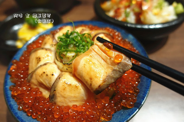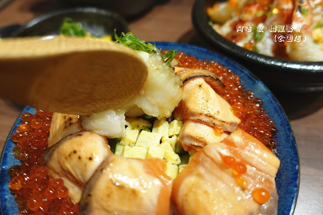 身為鮭魚控的我,看到那一圈肥美的燒炙厚切鮭魚,和幾近爆碗、晶瑩欲透的橘亮鮭魚卵,頓時真的產生戀愛時才會有的心動感。