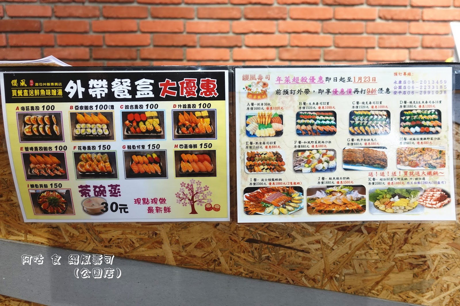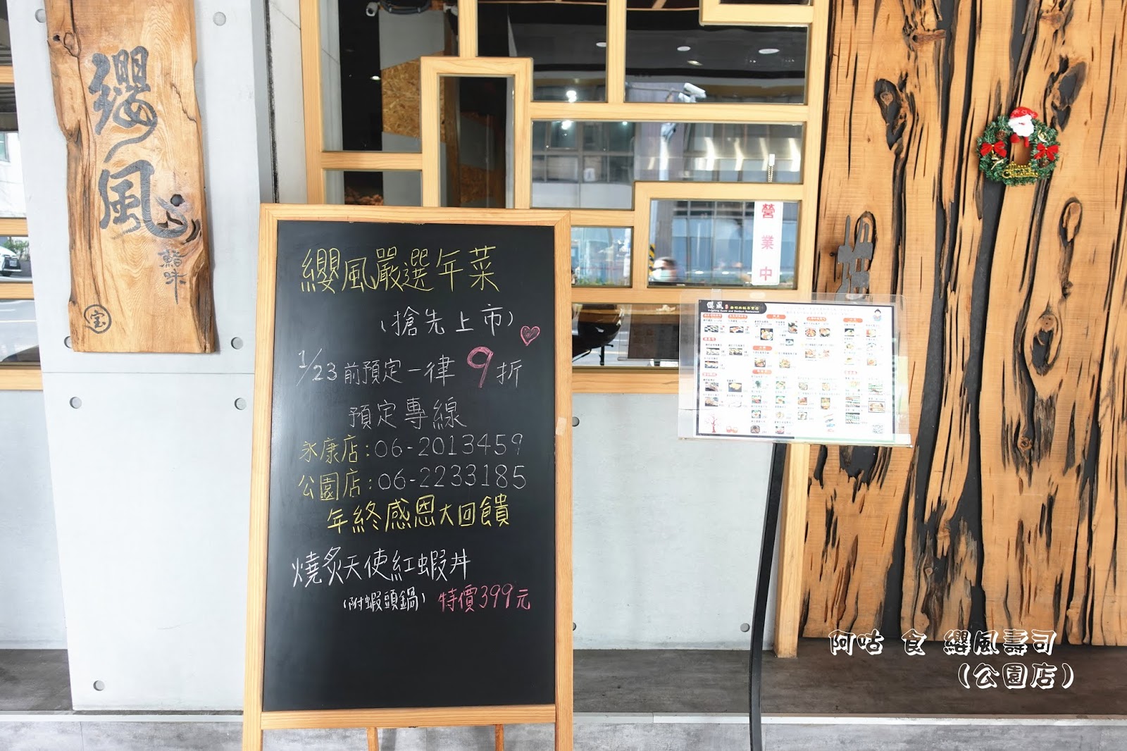 店門旁小黑板為年菜優惠宣傳,一旁立牌則是供參考的MENU。