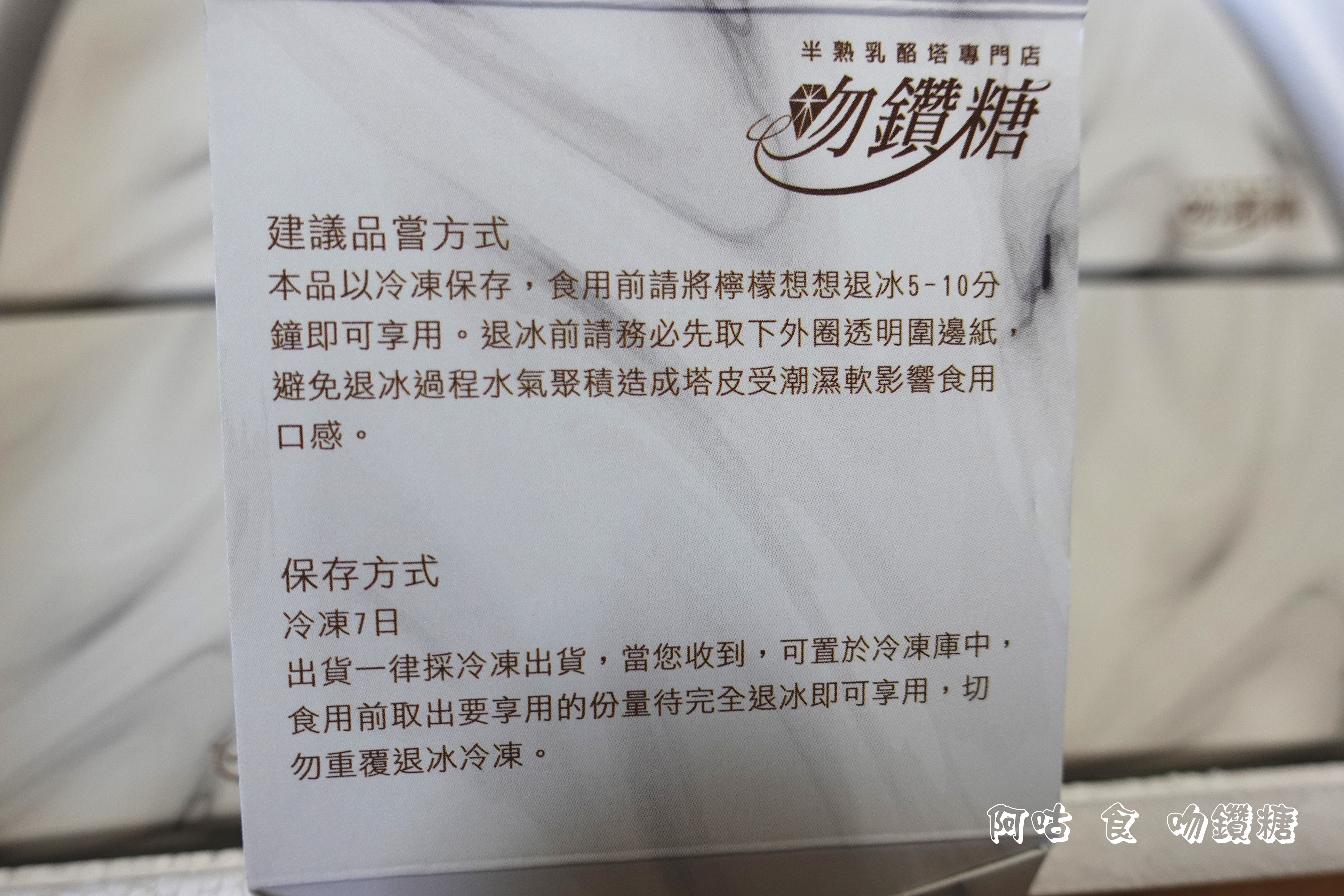 盒蓋上印有建議品嘗方式與保存方法。