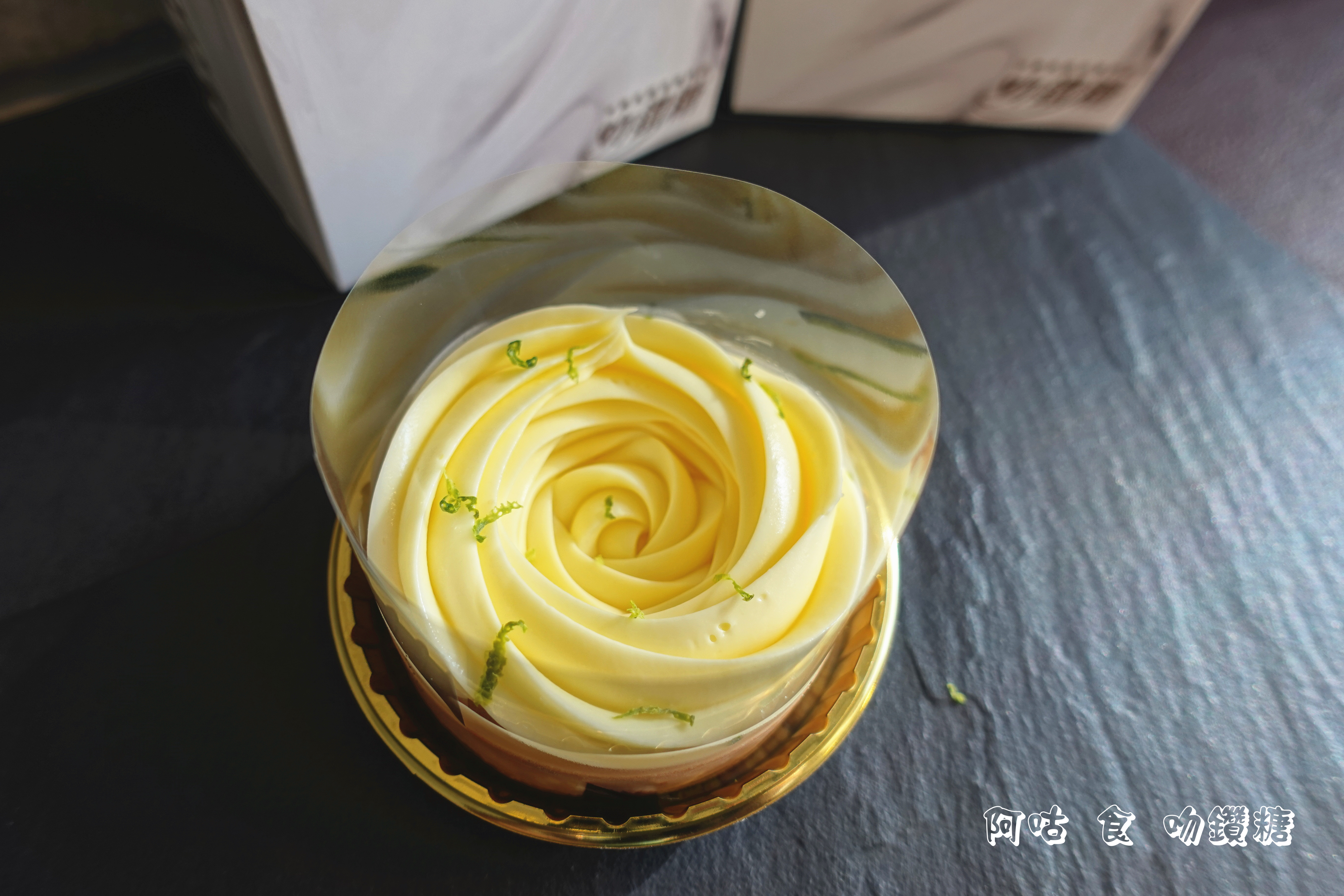 打開外盒,檸檬想想那有如玫瑰綻放的外型立即映入眼簾,外圈以透明圍邊紙固定,避免碰撞變形。