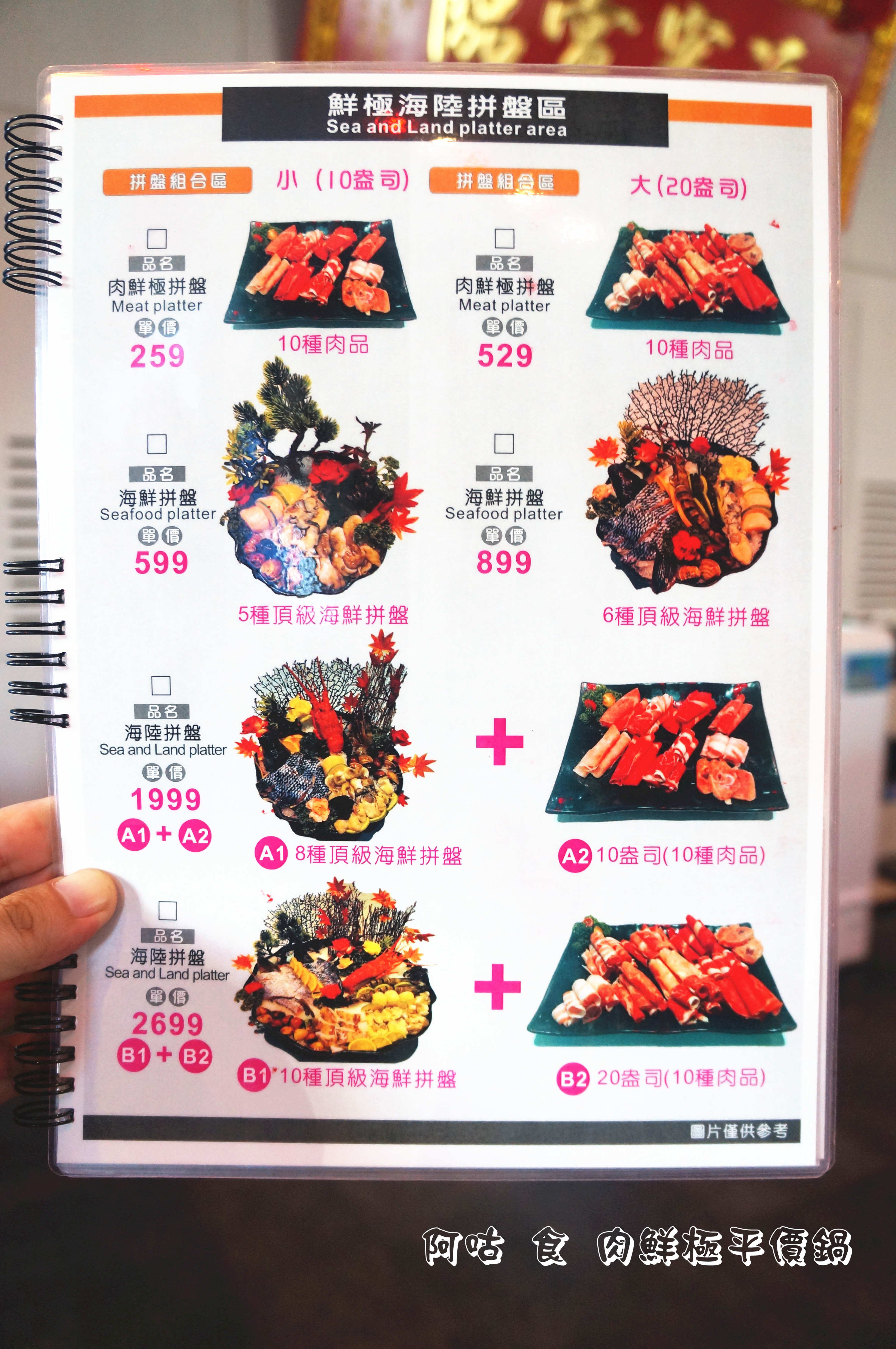 肉鮮極主打火鍋餐點,可選擇套餐或單點湯底加自選食材,此外也有多種拼盤組合可選擇。