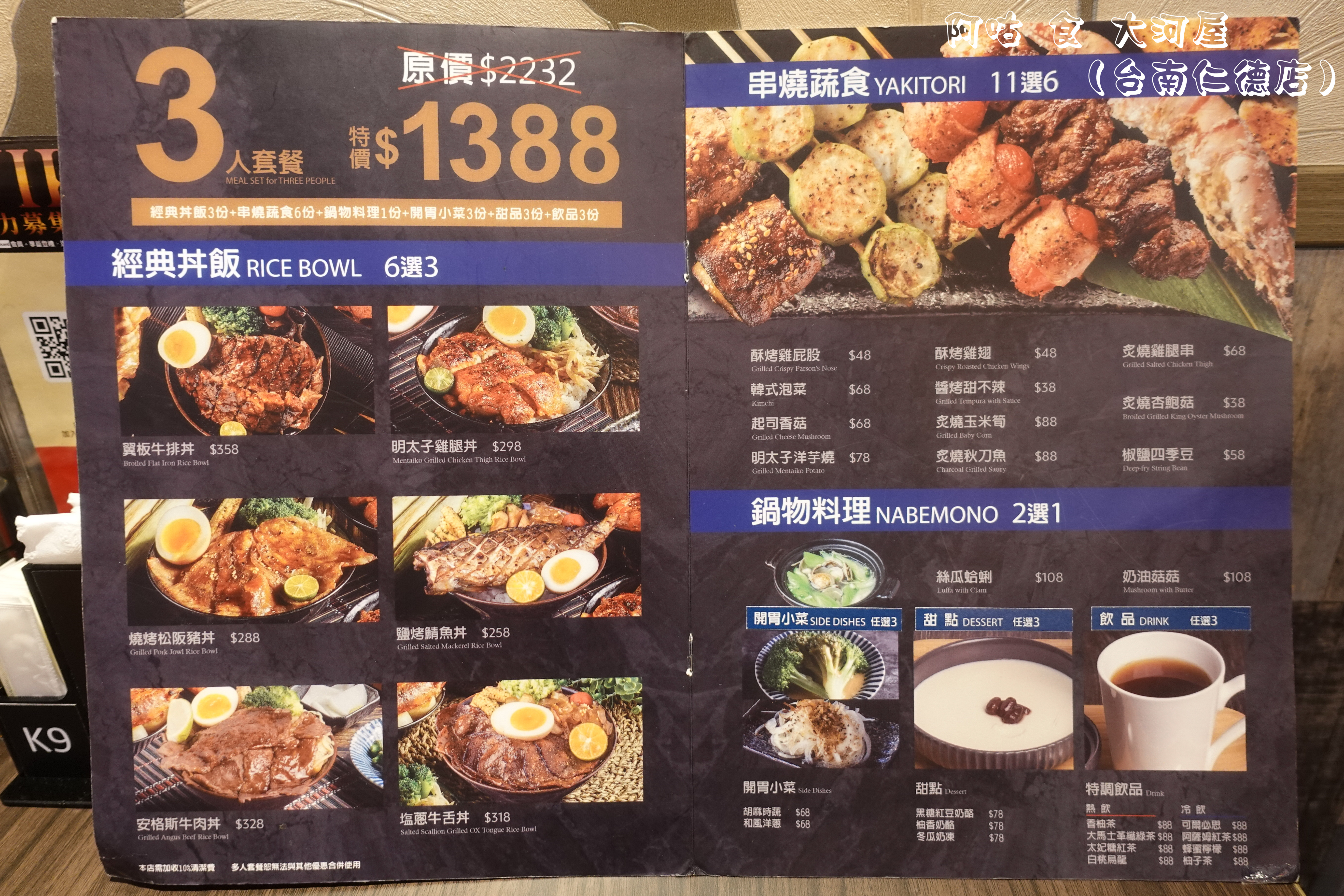 近期在FB上看到大河屋在離家不遠的仁德家樂福設點,終於可以不用跑到中西區或安平區,適逢店家推出新菜色,便趁下班後偕家人一同前往用餐。