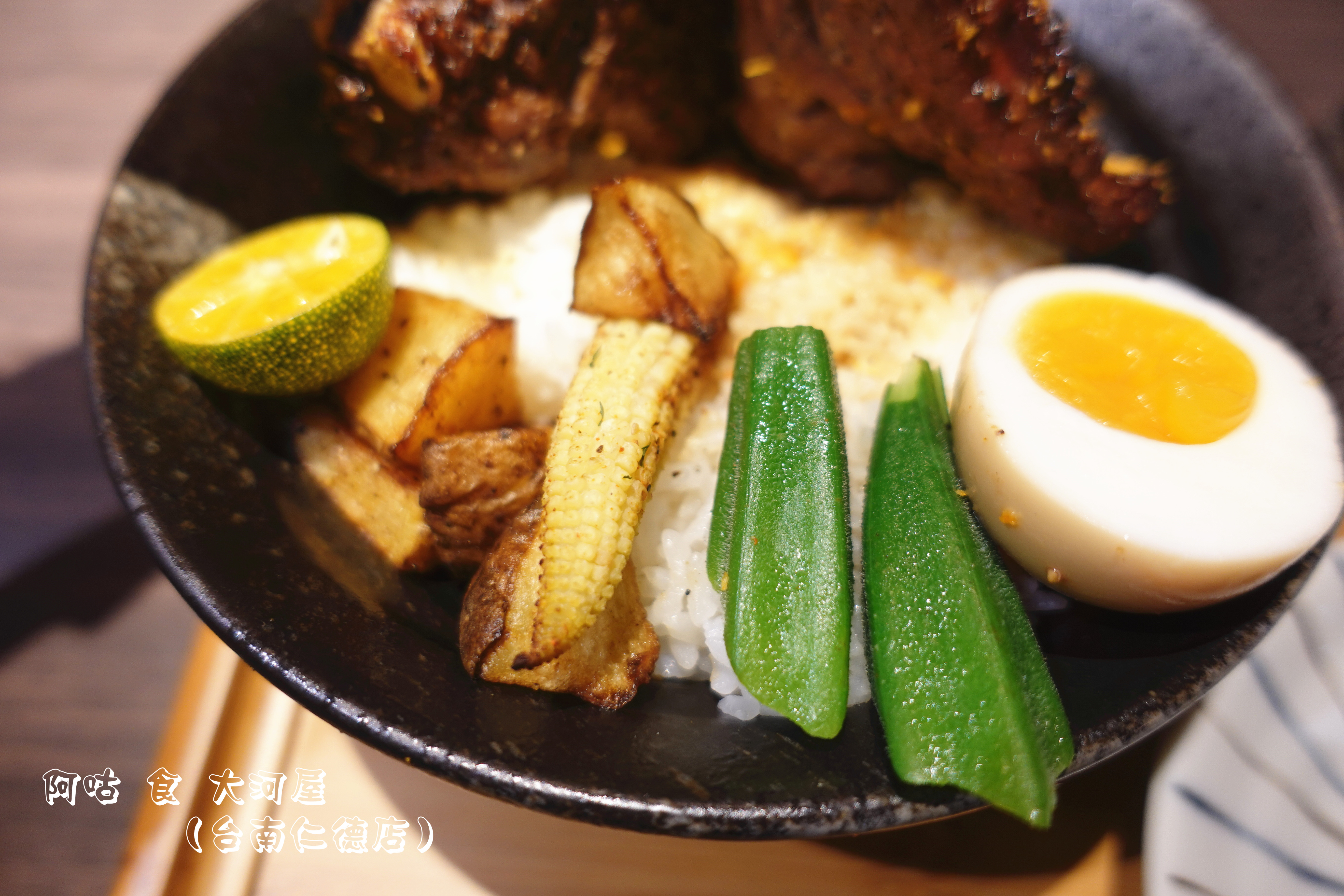 其他配菜有金桔、烤洋芋、烤玉米筍、烤秋葵與溏心蛋。